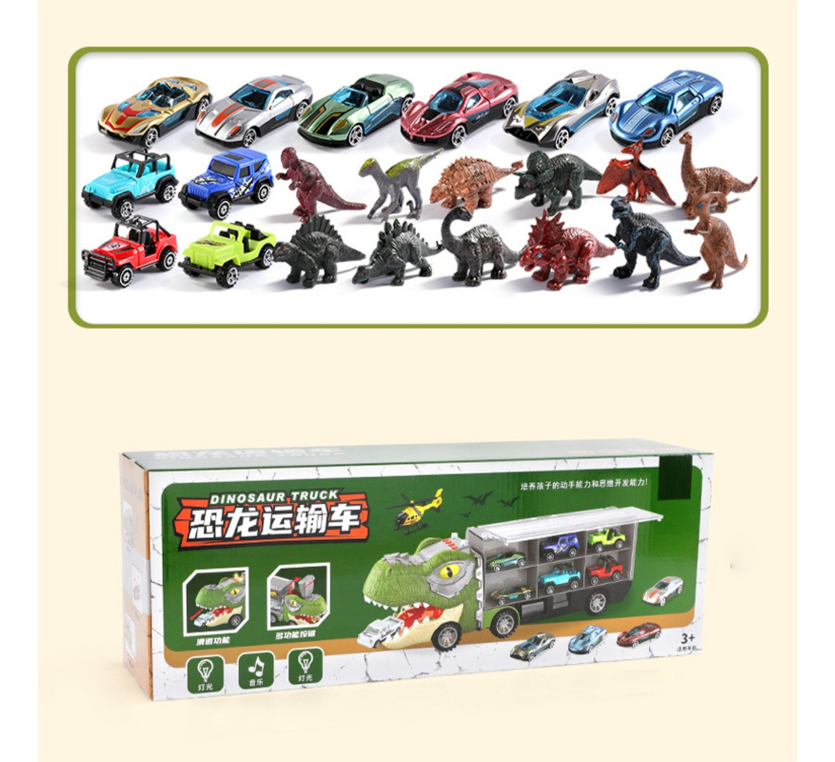 Juguete Niños Dino Camión Rampa 10 Autos 12 Dinosaurios
