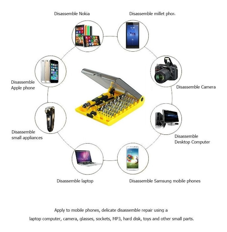 Descripción: 1 – Juego de herramientas manuales precisas intercambiables 1,45 en 1. 2 – Herramientas portátiles profesionales. 3 – Peso ligero, diseño compacto. 4 – Alta dureza y buena dureza. 5 – material PP y TPR, Mango antideslizante. 6 – Al usar este conjunto de herramientas, puede quitar la pequeña parte de su teléfono móvil/ordenador/Mp4. y reparar el dispositivo sin dañarlo.