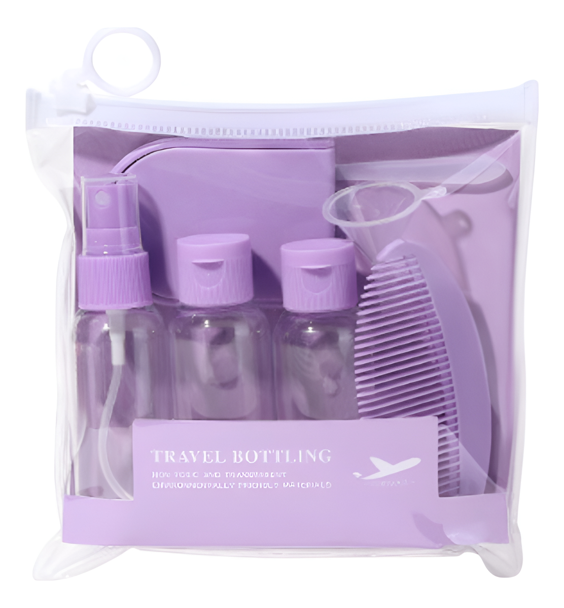 Kit Organizador de Botellas y Frascos Rellenables para Viaje, incluye todo lo necesario para llevar tus productos de cuidado personal de manera práctica y ordenada. Ideal para evitar derrames y facilitar el transporte de tus líquidos y cremas en cualquier viaje. Reutilizable y fácil de usar.