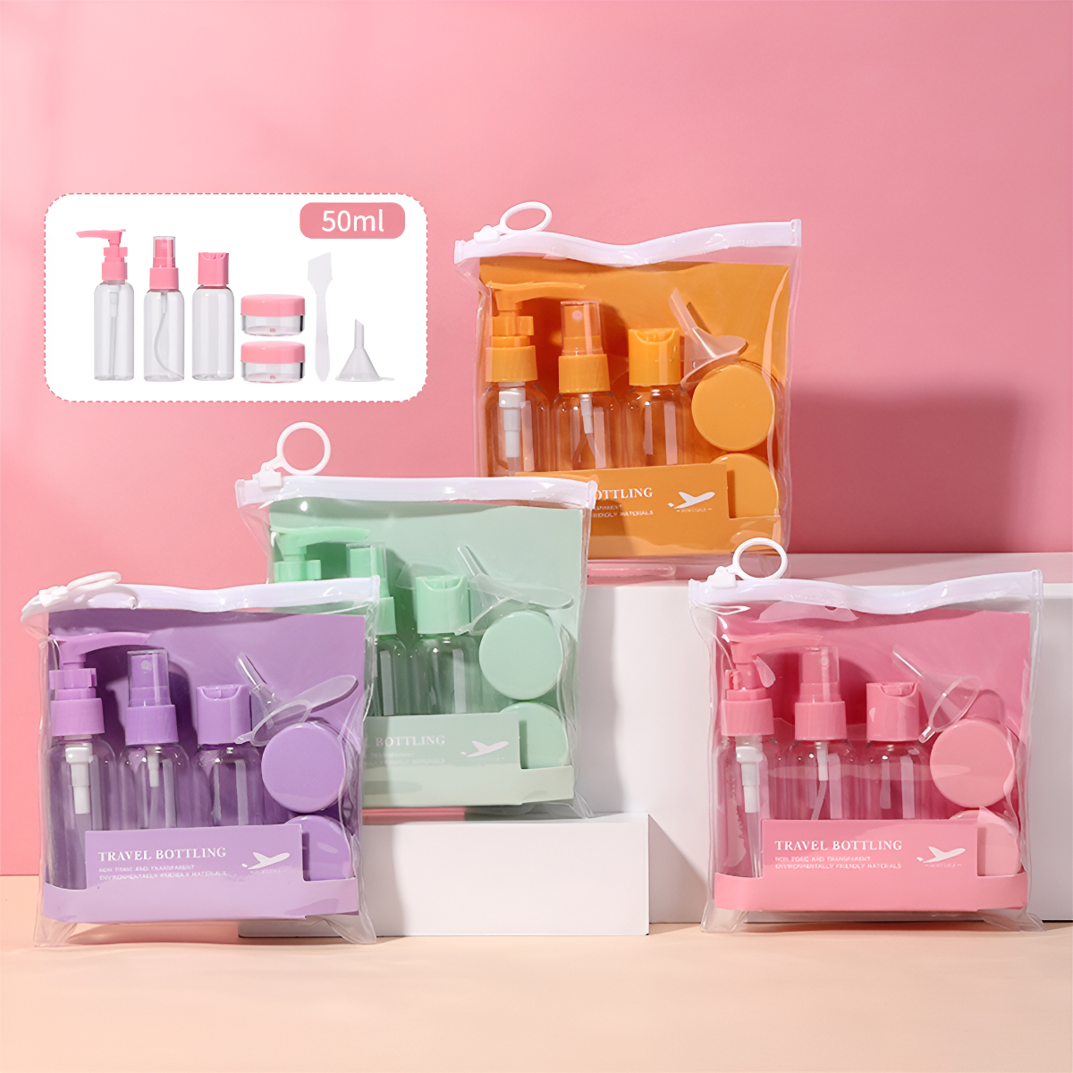 Kit Organizador Botellas Y Frascos Rellenables Para Viaje