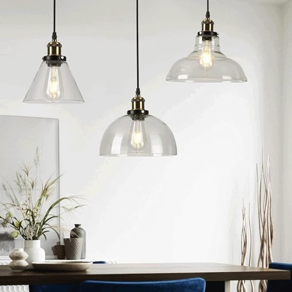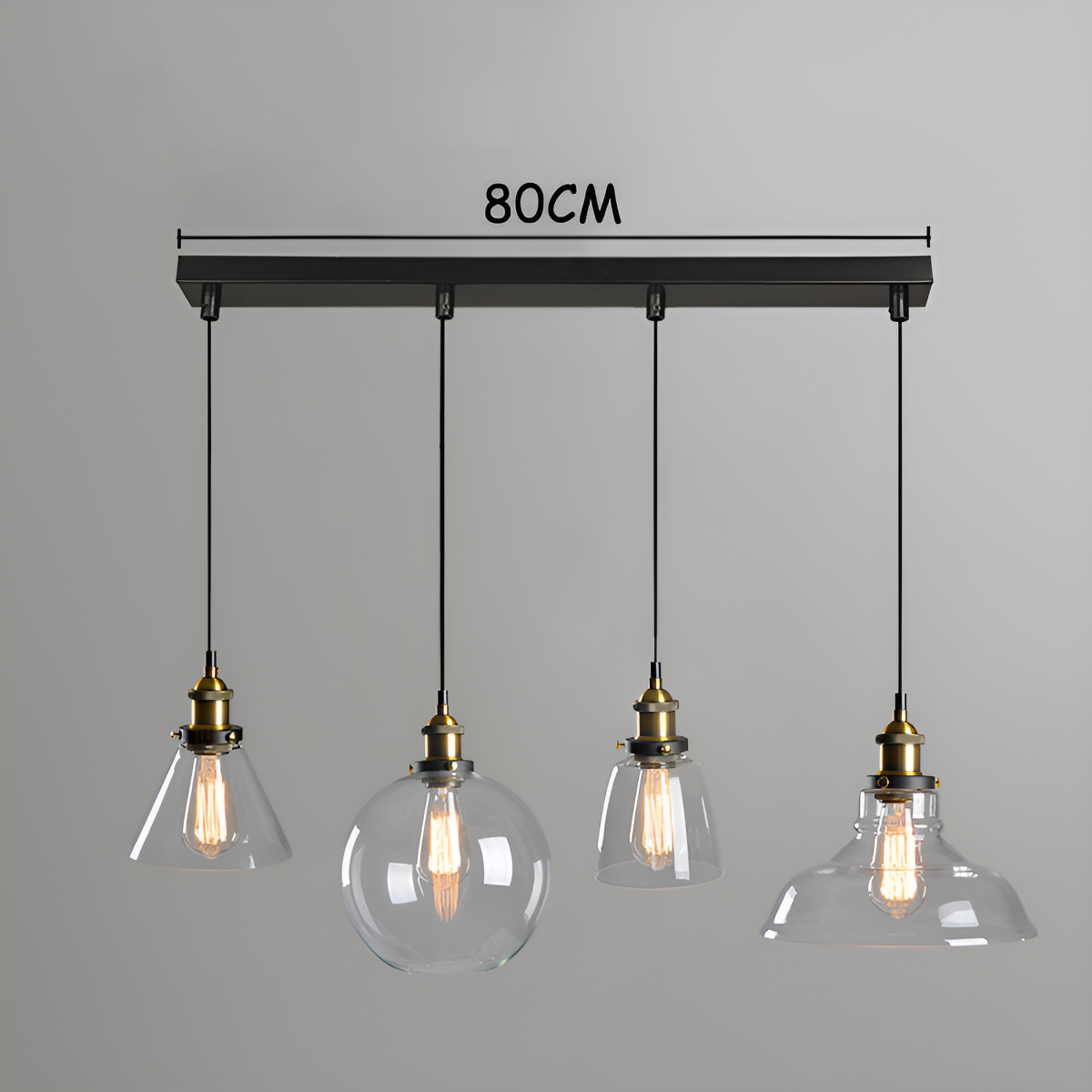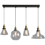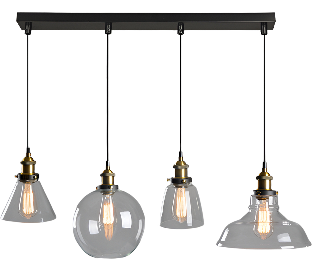 Dale un toque único y moderno a tus espacios con esta elegante lámpara colgante de diseño industrial. Incluye 4 pantallas de vidrio, cada una con un tamaño distinto, que crean un efecto visual atractivo y sofisticado. Perfecta para decorar salones, comedores, bares o cualquier ambiente que requiera estilo y funcionalidad.