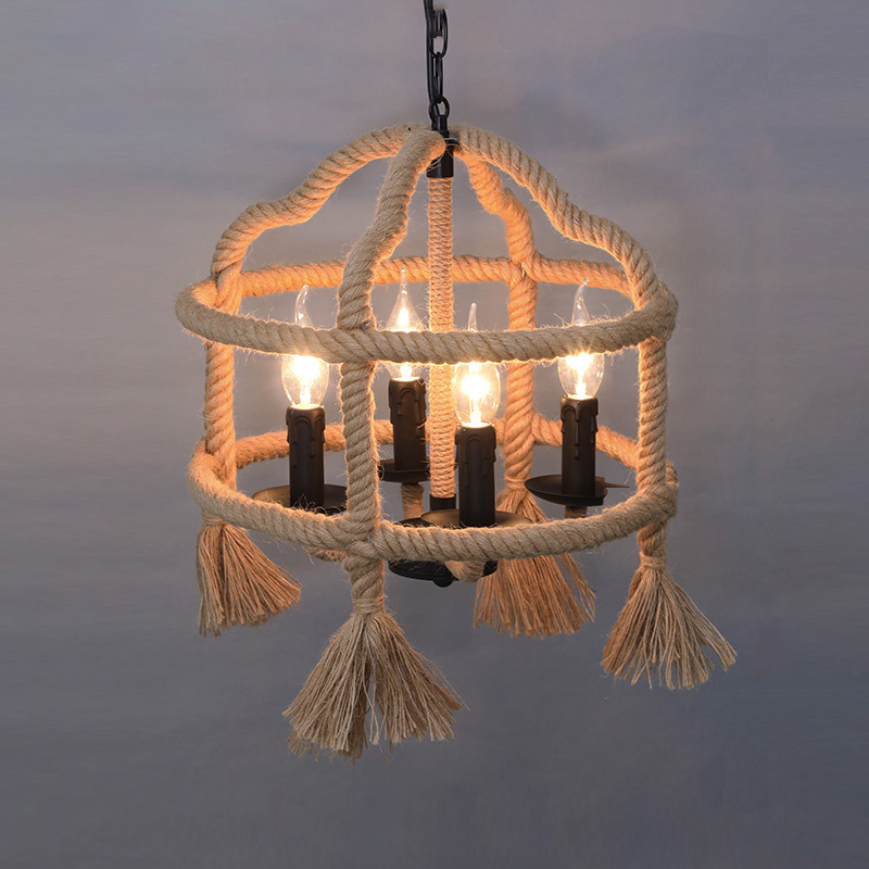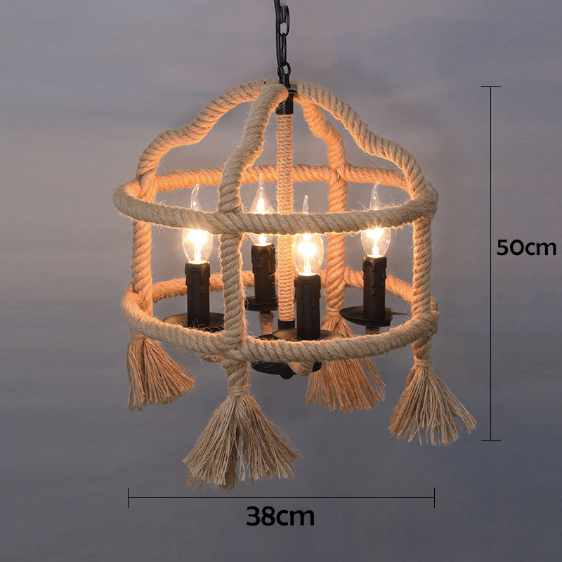 Lámpara en diseño de araña, ideal para crear un ambiente cálido y acogedor. Esta lámpara tiene capacidad para 4 bombillas con forma de vela (no incluidas), lo que le otorga un estilo vintage y elegante. Fabricada con cuerda y soga, su estructura rústica combina perfectamente con diversos estilos decorativos. Incluye todo el material necesario para su ensamblaje e instalación, lo que facilita su montaje. Perfecta para comedores, salas o espacios con un toque de distinción y calidez.