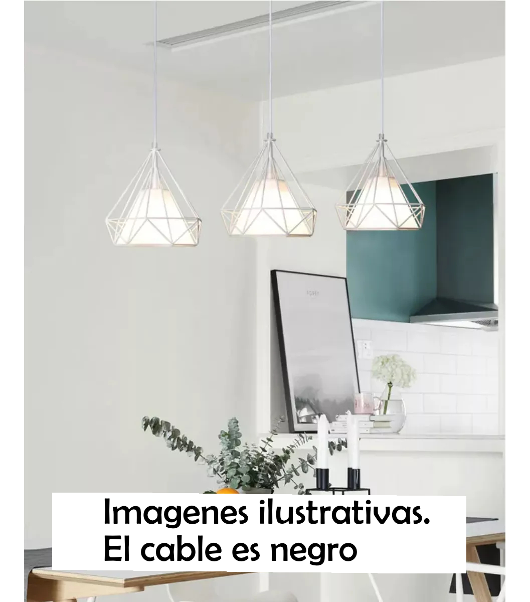 Elegante y moderna, esta lámpara colgante de techo con diseño en forma de diamante y estructura de jaula metálica es ideal para decorar cualquier espacio del hogar, aportando un toque sofisticado. Su estilo minimalista se adapta tanto a decoraciones modernas como industriales, y gracias a su diseño abierto, permite una excelente difusión de luz para crear una atmósfera cálida y acogedora. Incluye bombilla y es fácil de instalar, lo que la convierte en una opción perfecta para iluminar salones, comedores o cualquier ambiente interior.