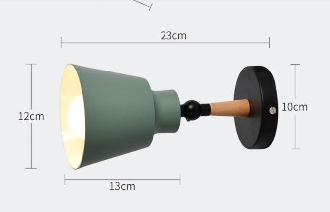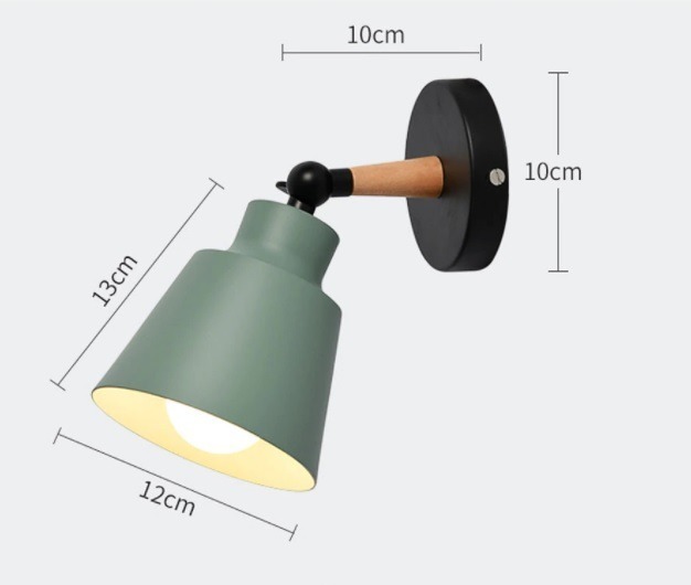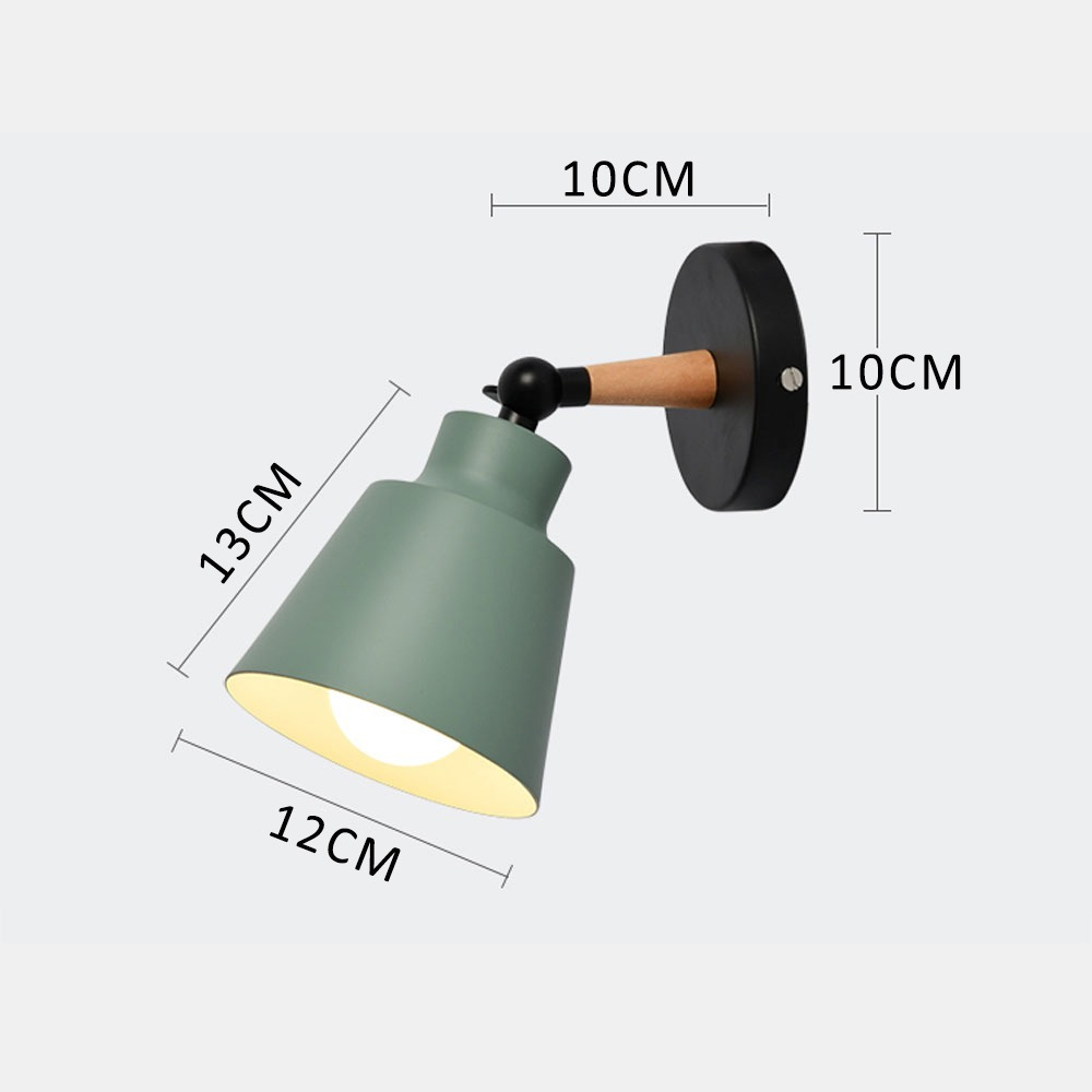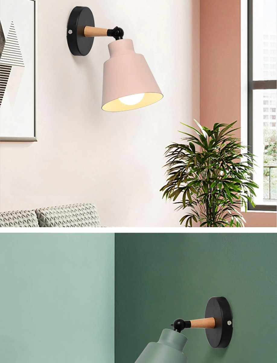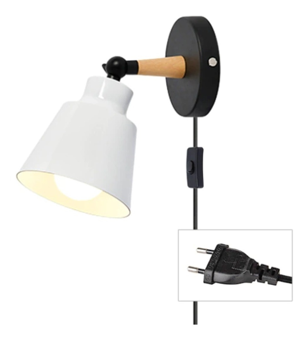 Lámpara de pared estilo aplique, fabricada con pantalla y base de metal, combinada con un brazo de madera que aporta un toque moderno y cálido. Ideal para iluminar y decorar dormitorios u otros ambientes.