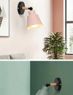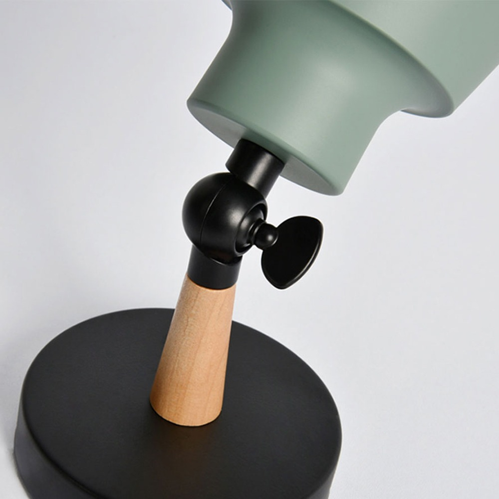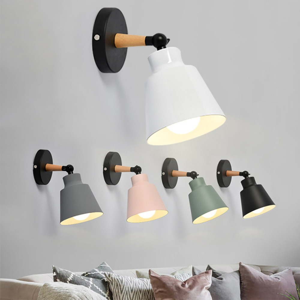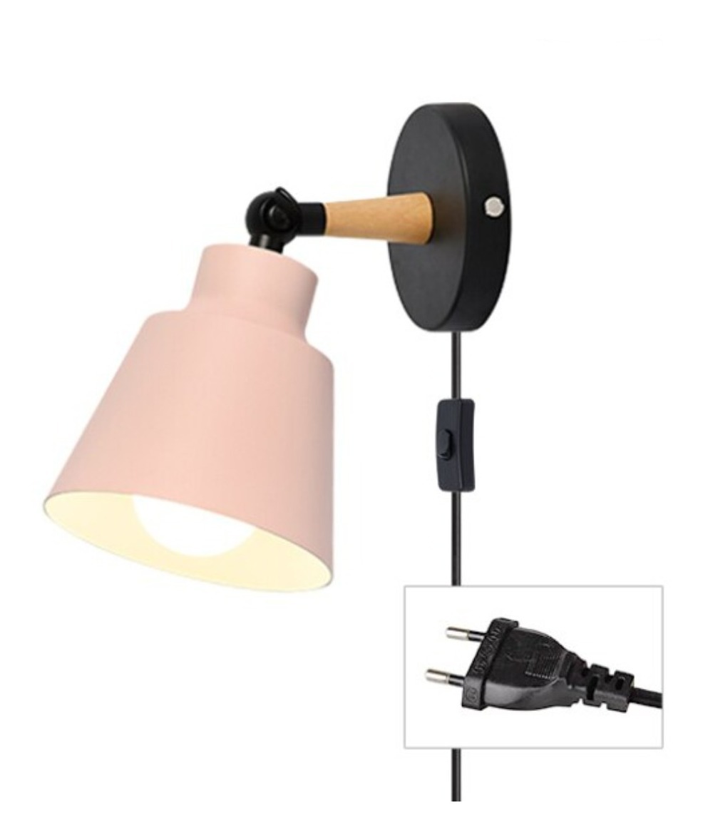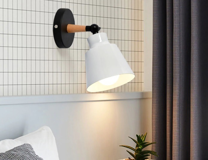 Lámpara de pared estilo aplique, fabricada con pantalla y base de metal, combinada con un brazo de madera que aporta un toque moderno y cálido. Ideal para iluminar y decorar dormitorios u otros ambientes.