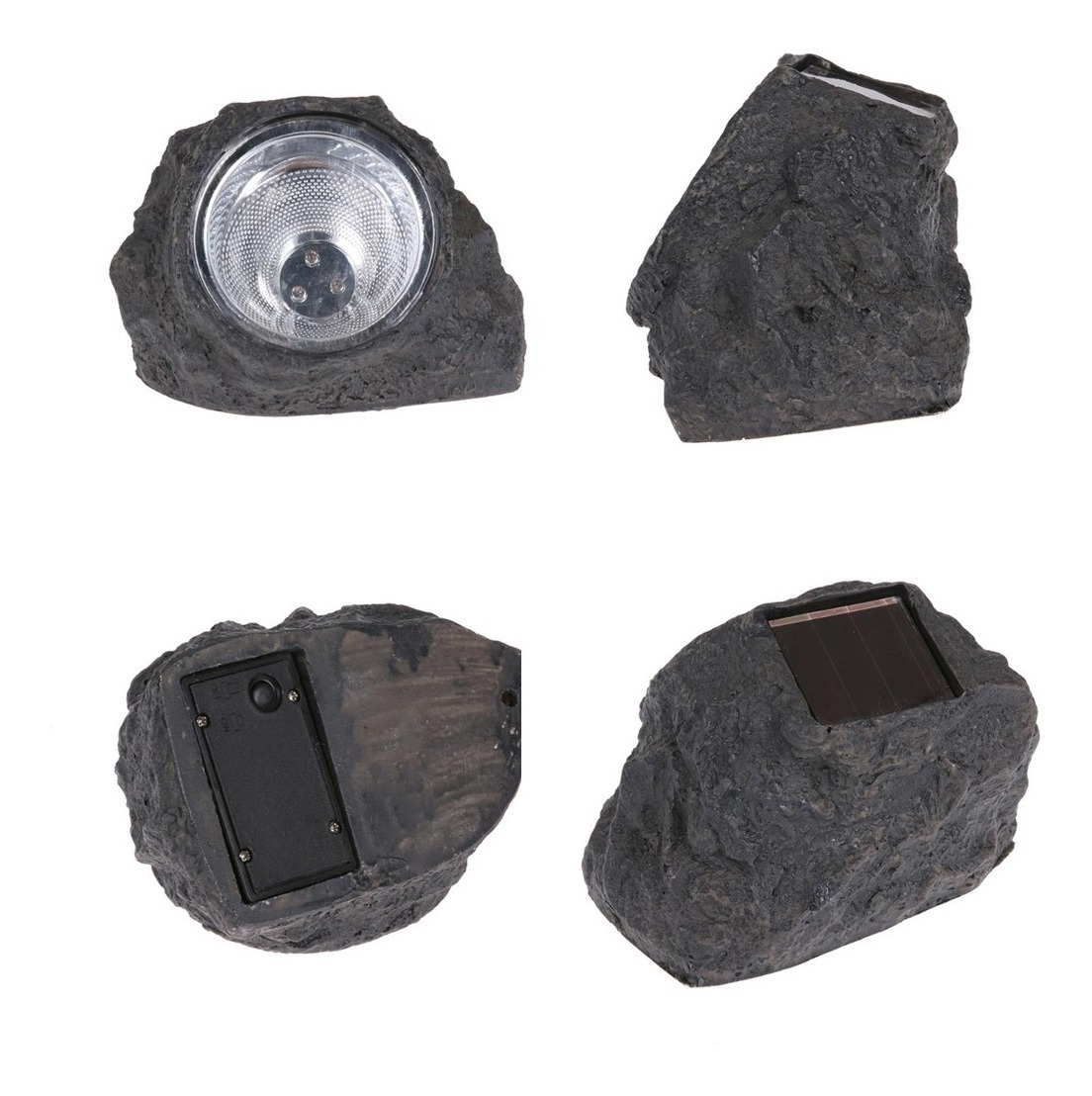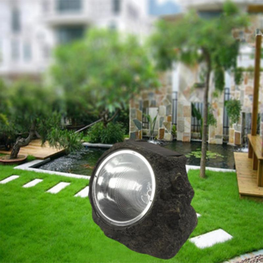 Lampara solar roca, ideal para jardines y patios, se activa sola ante la ausencia de luz, y se carga automáticamente con la luz solar.
