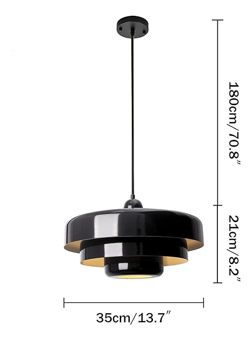 Dimensiones perfectas: con un diámetro de 35cm y una altura de 21cm, junto con una longitud de cable ajustable de 180cm, estas modernas luces colgantes de mediados de siglo son adecuadas para diversas aplicaciones de iluminación interior, incluyendo islas de cocina, pasillos, restaurantes, salas de estar, dormitorios y mesas de comedor.