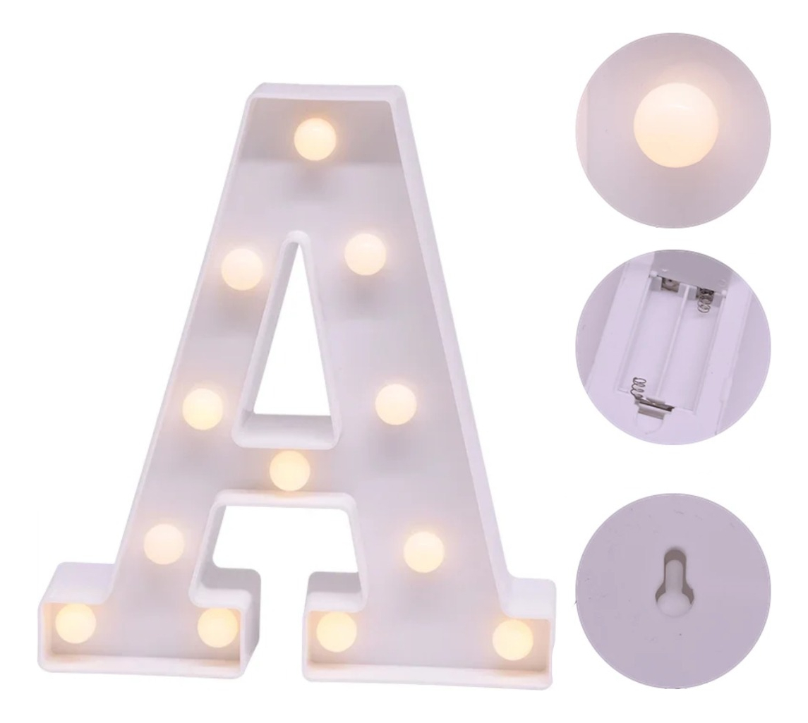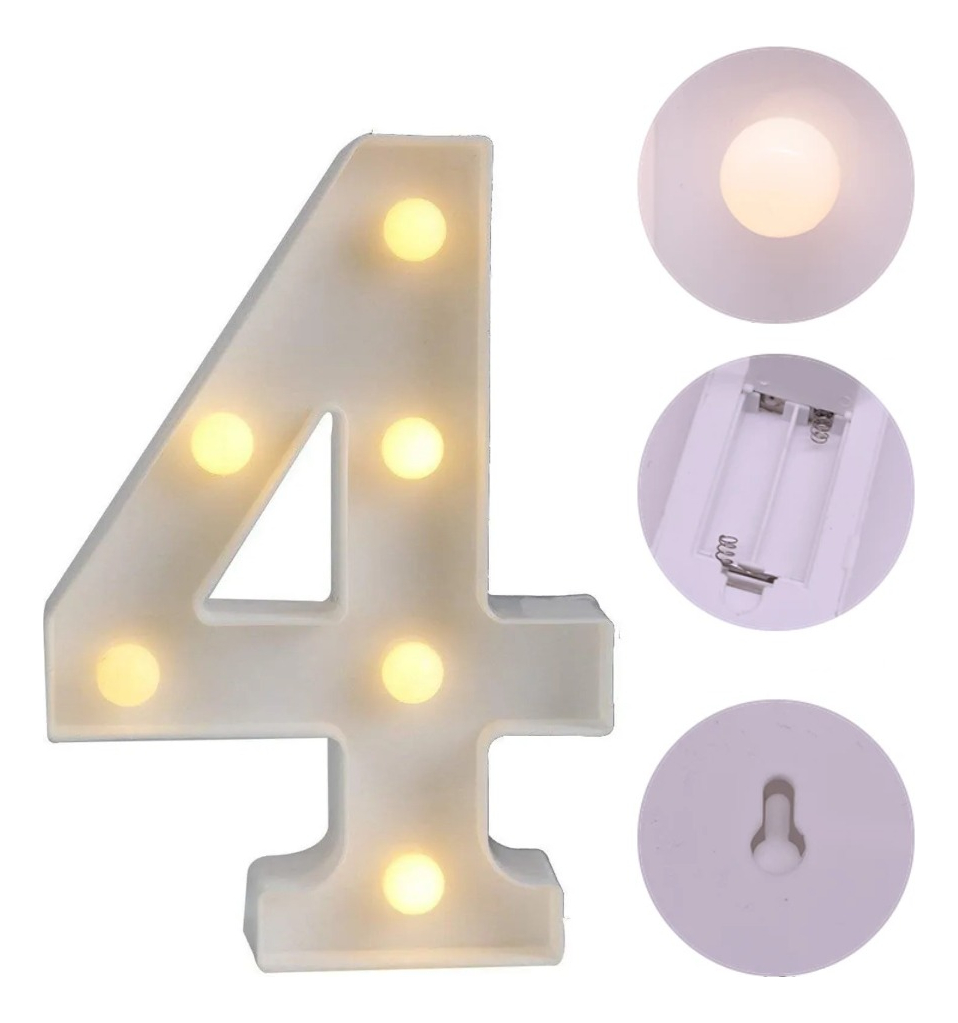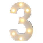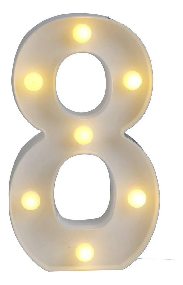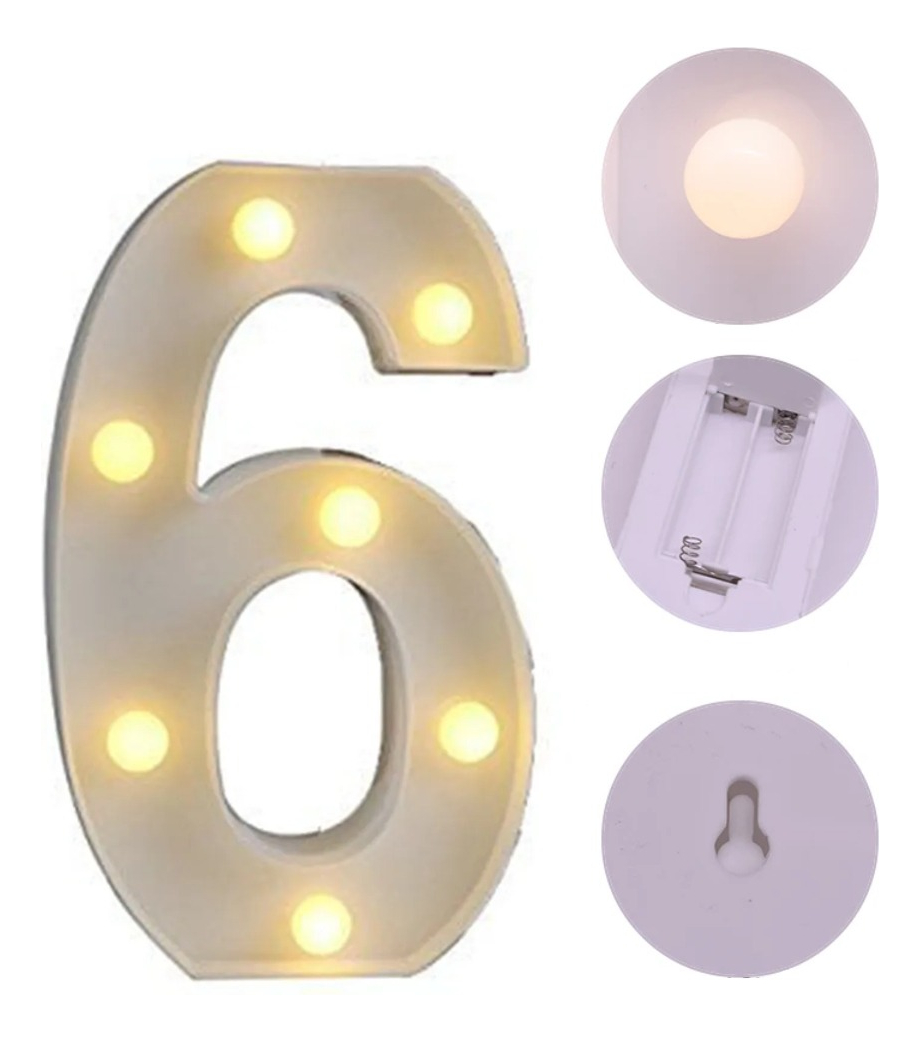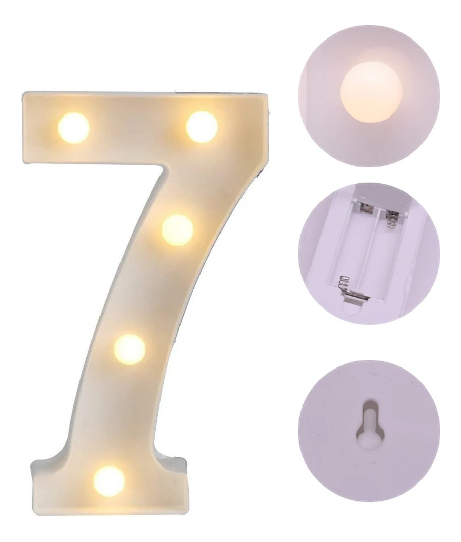 Letras y números LED corpóreos ideales para decoración de fiestas. Fabricados en plástico, cuentan con un interruptor on/off y se pueden colgar en la pared. La luz LED emite un color blanco cálido y funciona con 2 pilas AA (no incluidas).