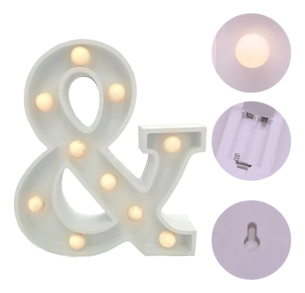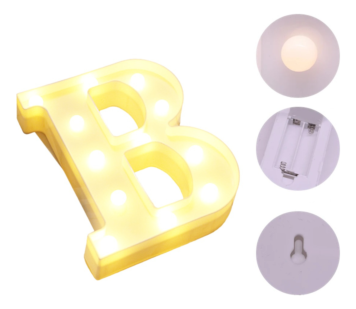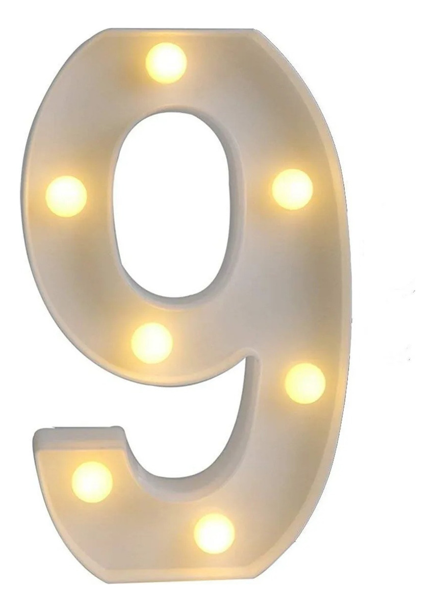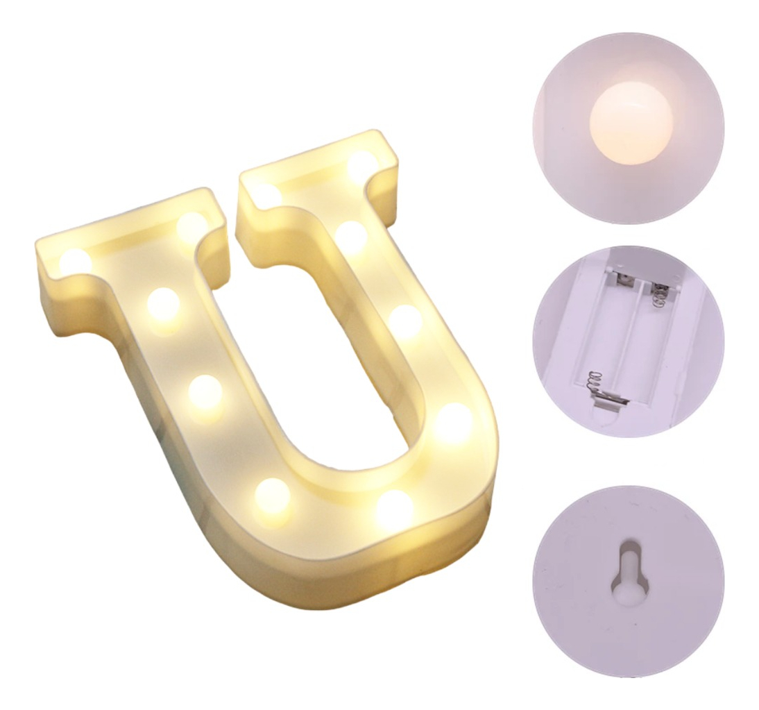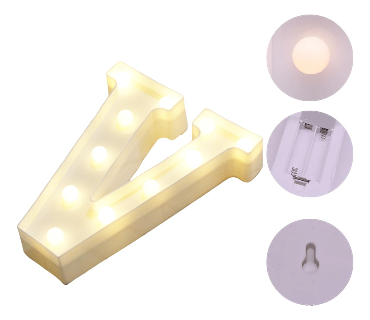 Letras y números LED corpóreos ideales para decoración de fiestas. Fabricados en plástico, cuentan con un interruptor on/off y se pueden colgar en la pared. La luz LED emite un color blanco cálido y funciona con 2 pilas AA (no incluidas).