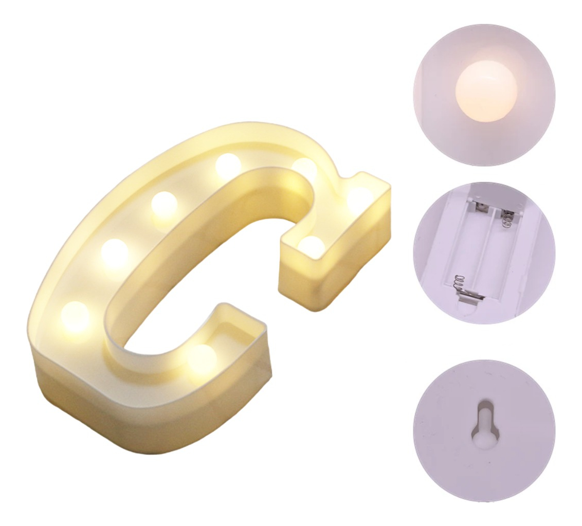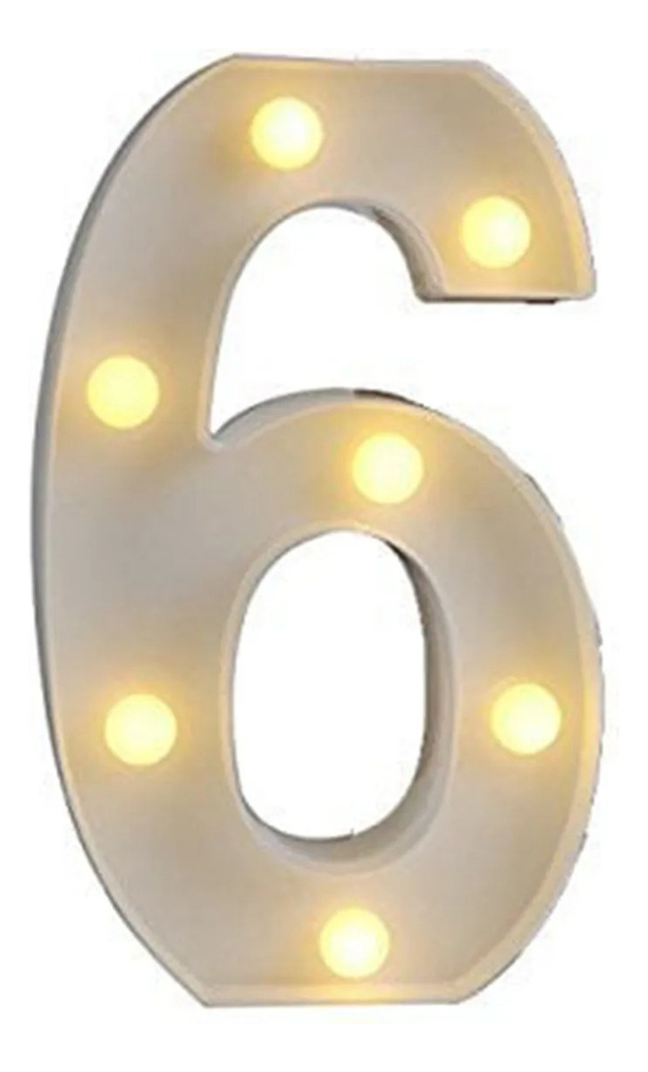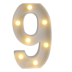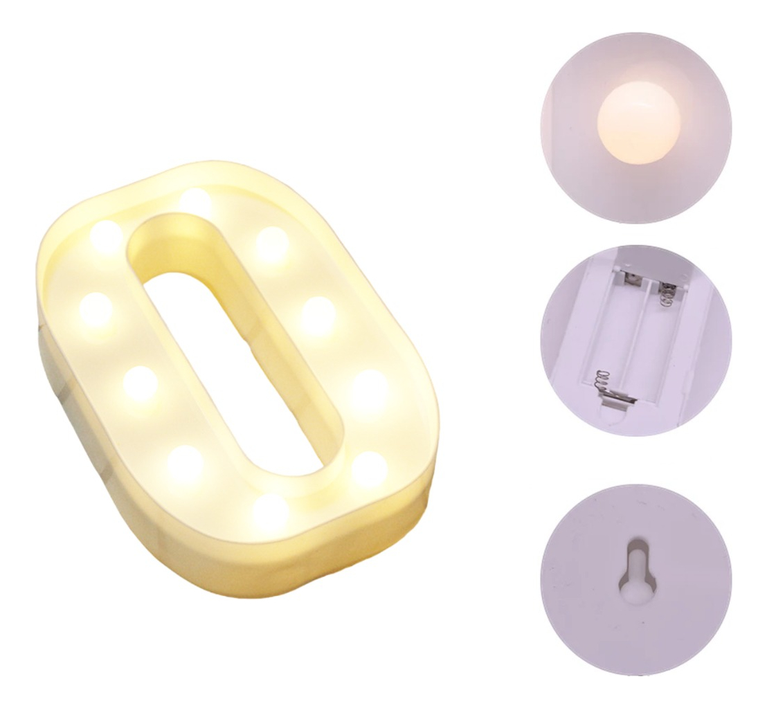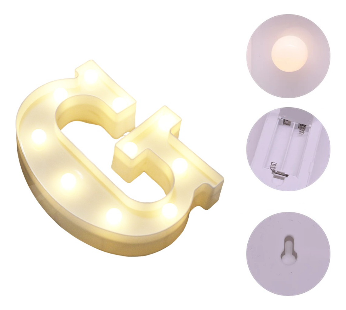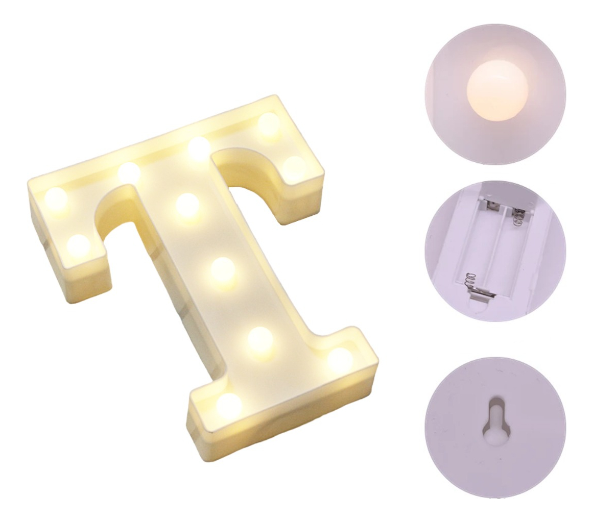 Letras y números LED corpóreos ideales para decoración de fiestas. Fabricados en plástico, cuentan con un interruptor on/off y se pueden colgar en la pared. La luz LED emite un color blanco cálido y funciona con 2 pilas AA (no incluidas).