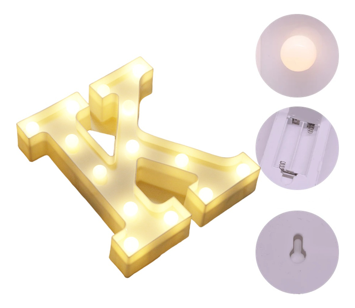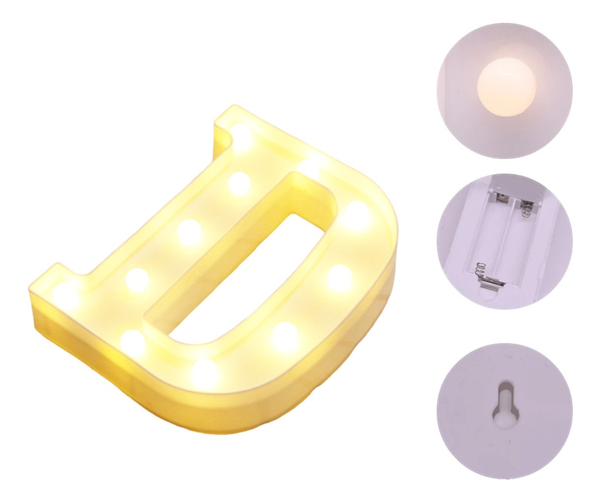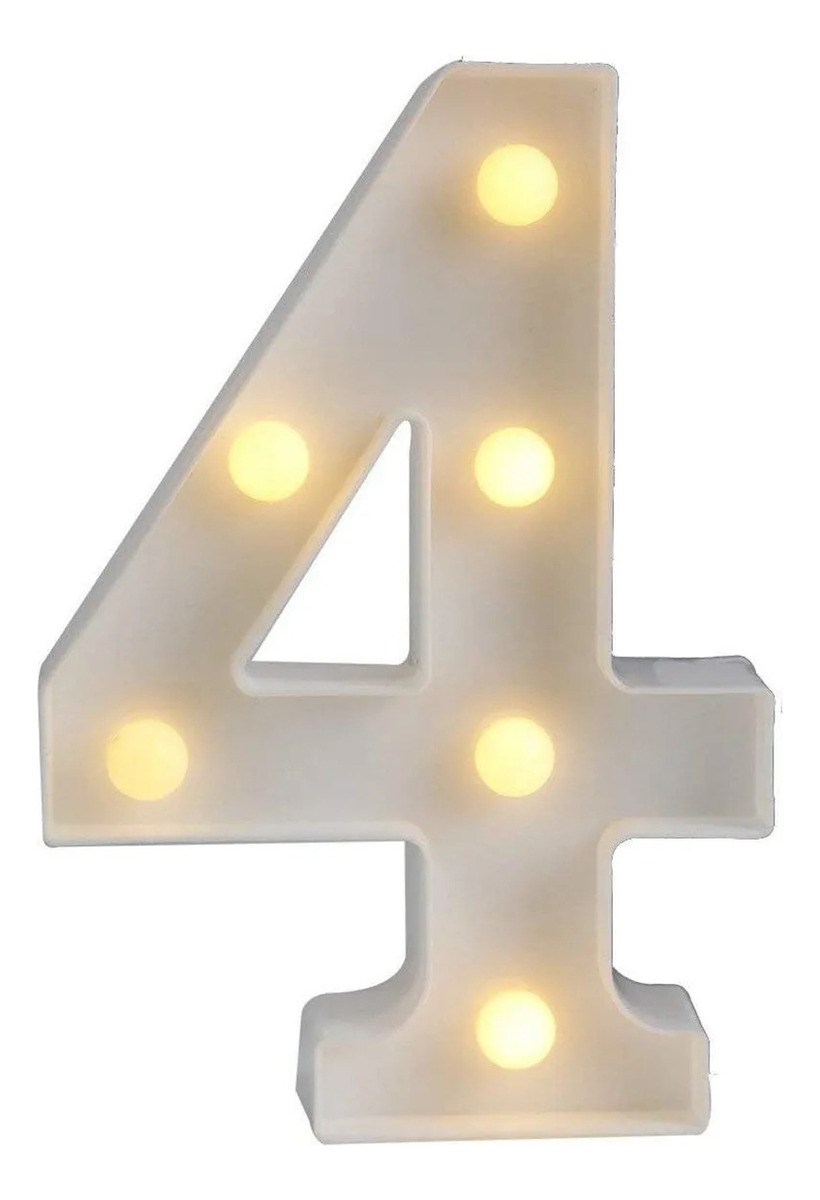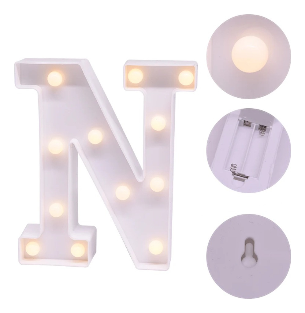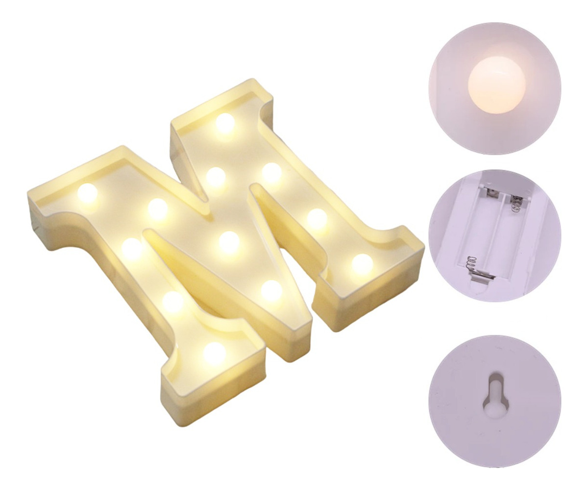 Letras y números LED corpóreos ideales para decoración de fiestas. Fabricados en plástico, cuentan con un interruptor on/off y se pueden colgar en la pared. La luz LED emite un color blanco cálido y funciona con 2 pilas AA (no incluidas).
