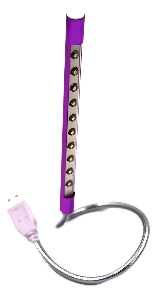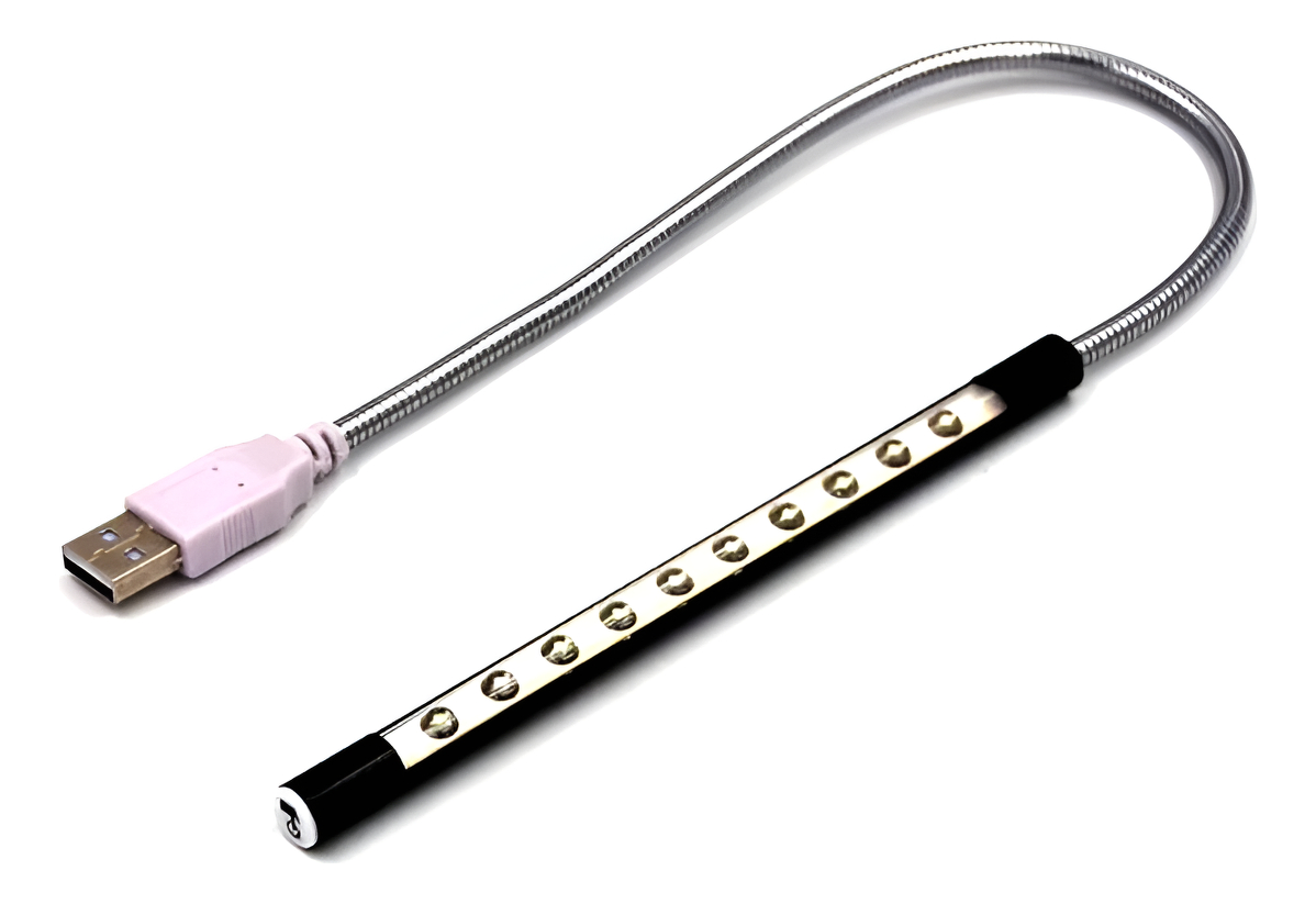 Luz flexible para notebook. 45 cm aproximado largo total (30 de cable + 15 de luz) 10 leds Puede utilizarse directo a notebook, computadora, batería externa, etc.