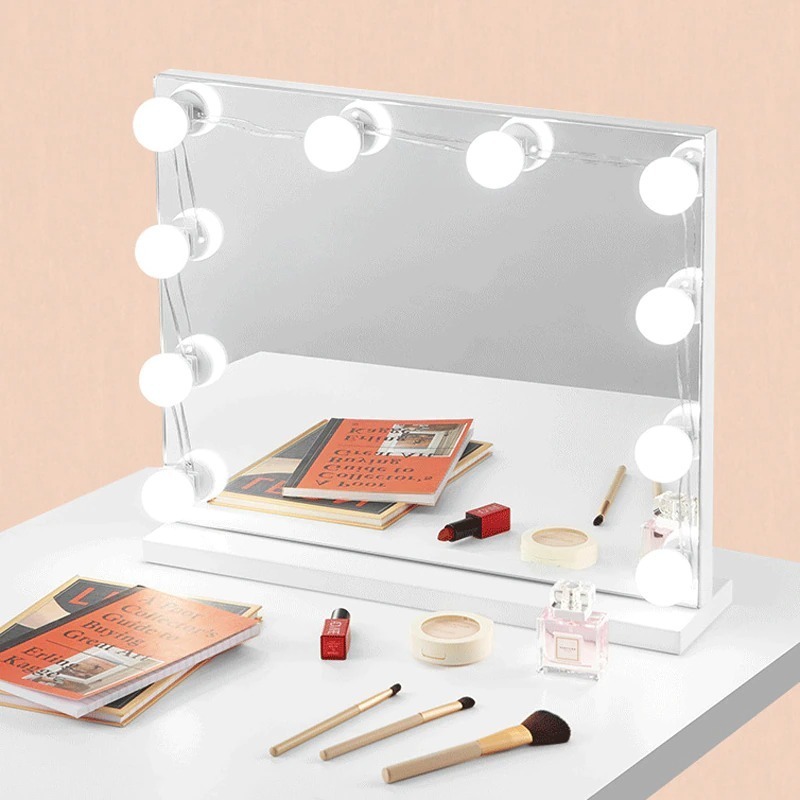 Productos de ventajas: * Bombillas de tocador estilo Hollywood luz led para espejo, el nuevo diseño, versión avanzada, más hermosa y más conveniente. * El puerto USB, las bombillas y la fuente de alimentación se pueden conectar por USB de muchas maneras, como computadora portátil, Banco de energía, enchufe, por lo que es muy conveniente al usarlo. * Ajuste de brillo, el brillo se puede ajustar de brillante a oscuro, de oscuro a brillante, según sus necesidades. * Está equipado con función de memoria, graba el último modo de iluminación cuando lo usa y es el mismo modo de iluminación cuando lo usa de nuevo. * La distancia máxima entre dos bombillas es de aproximadamente 33cm, lo que hace que se ajuste a la mayoría de los espejos. * Ajuste de longitud del cable, la distancia más pequeña entre dos bombillas se puede reducir a aproximadamente 1,7 cm, si crees que está demasiado cerrado, se puede alargar, según tus necesidades,. Muy fácil de operar ( enroscando el cable en la parte trasera del foco hasta el punto deseado) * Lo más importante es que el exceso de cables están ocultos en las bombillas, que no se pueden ver fuera, para mantener tu espejo limpio, hermoso y elegante. * Se proporcionan cintas de doble cara y ventosas, las bombillas se pueden pegar directa y rápidamente en los espejos con cintas o ventosas. * Voltaje de entrada DC 12V, seguro de usar. * Buen efecto de enfriamiento, ahorro de energía, larga vida útil. * Luz suave, alta eficiencia luminosa, sin radiación de calor, sin parpadeo, sin manchas, protección ocular, proporcionando una iluminación profesional para el maquillaje. * Se puede utilizar para maquillaje, luz de relleno, decoración, lámpara de decoración de espejo, lámpara de decoración de escenario, lámpara de decoración de gabinete, lámpara de decoración de estudio, etc. * Es adecuado para bodas, fiestas de cumpleaños, San Valentín y otras fiestas.
