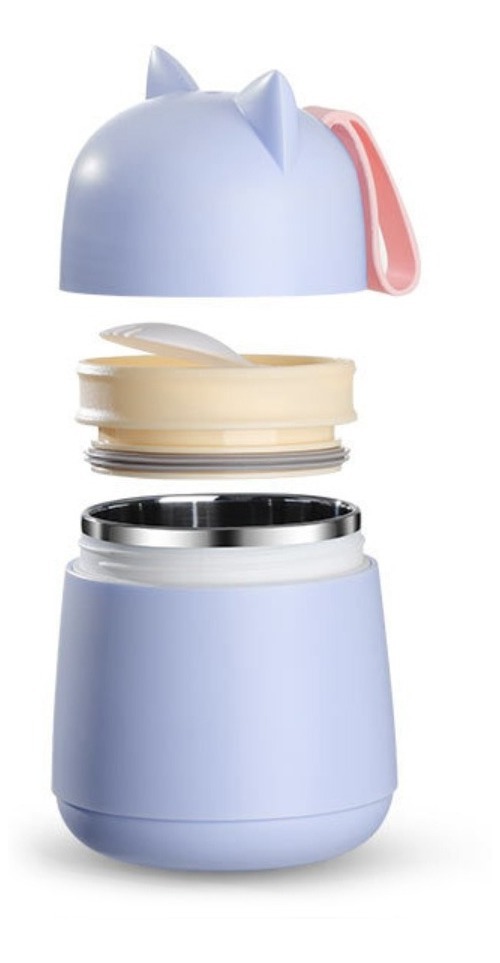 Incluye cuchara tenedor plegable Receptáculo de alimentos en metal, si se desea mantener los alimentos calientes se recomienda precalentar con agua caliente unos minutos, luego volcar el agua y agregar los alimentos.