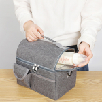 Es fabricada con poliéster Oxford, resistente y duradero. Contiene revestimiento de PEVA (acetato de vinilo de polietileno). No tóxico y apto para alimentos, facilita la limpieza y asegura la seguridad de tus comidas. Ofrece dos bolsillos externos proporcionan espacio adicional para guardar utensilios, servilletas u otros artículos pequeños.Incluye una correa ajustable que permite llevarla cómodamente al hombro o cruzada.