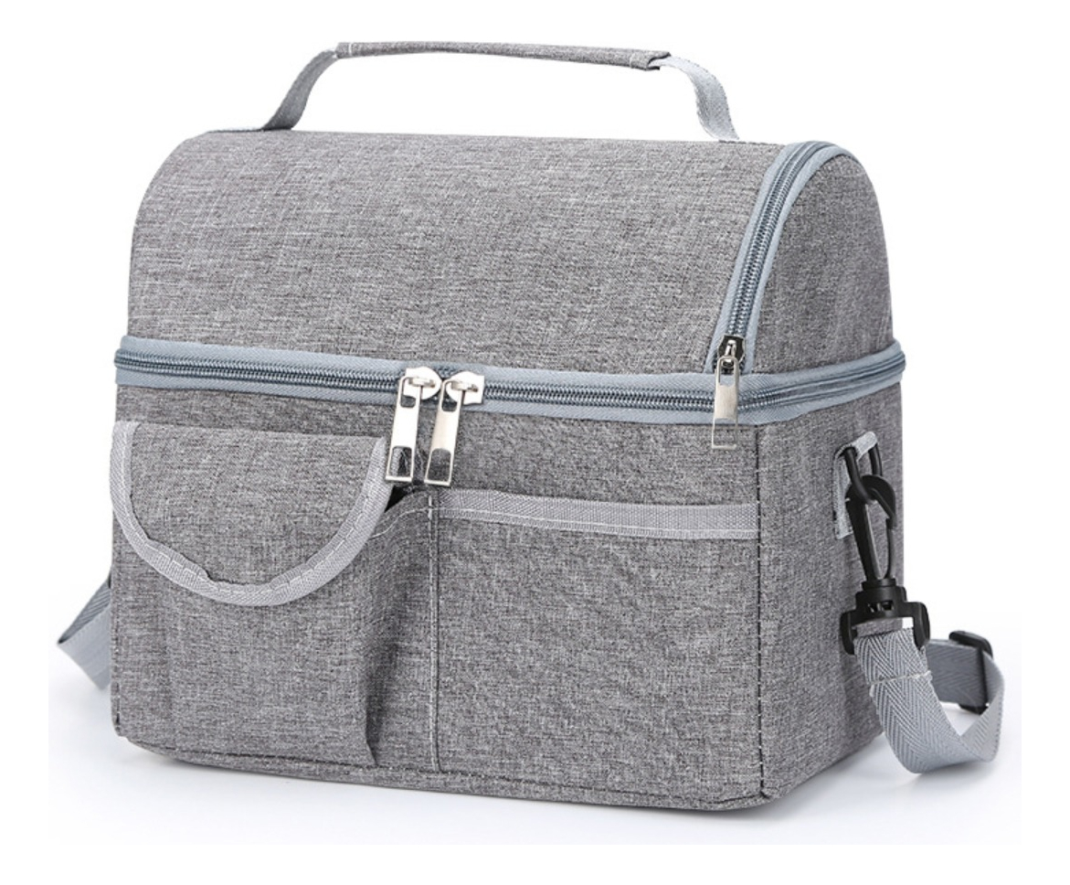 Esta lunchera térmica es ideal para mantener tus alimentos frescos y a la temperatura ideal durante todo el día. Diseñada con funcionalidad y comodidad en mente, incluye múltiples bolsillos externos y una correa ajustable para facilitar su transporte.