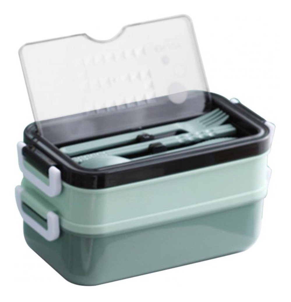 Lunchera Vianda Con Cubiertos Pote Alimentos Dos Pisos