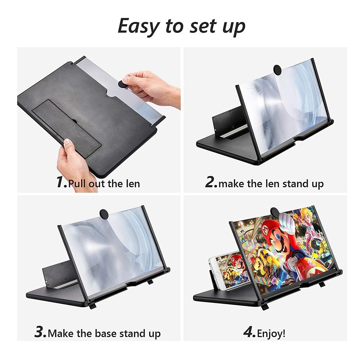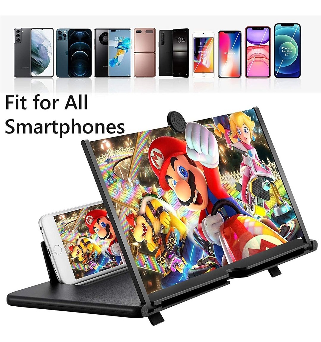 5. Excelente compatibilidad: ya sea para iPhone o un teléfono Android, la pantalla del proyector de la lupa se puede utilizar con su dispositivo. El placer visual 3D puede evitar la fatiga visual.