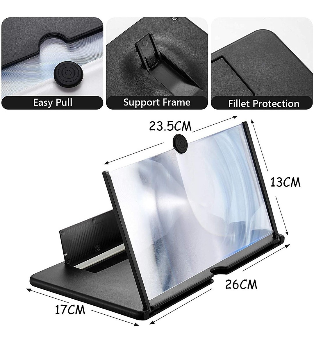 4. Materiales de alta calidad: plástico ABS y espejo Fresnel, fuerte y duradero, incluso mayor definición. Ángulo de visión ajustable del marco elevado. La almohadilla de silicona antideslizante protege y estabiliza el teléfono.