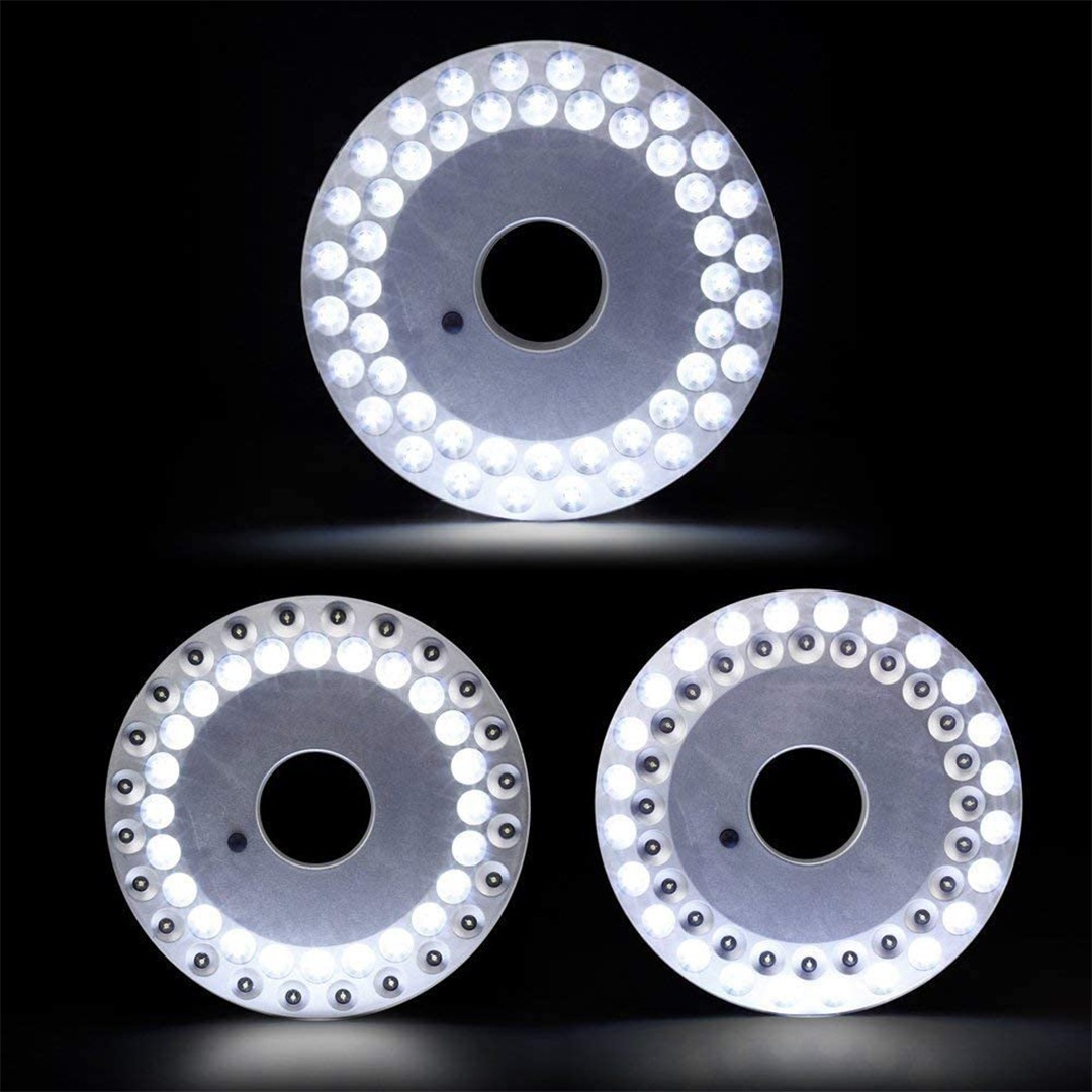 – 48 luces LED, luz blanca super brillante, que puede iluminar grandes áreas. 3 modos de brillo, incluyendo 24 luces LED interiores, 24 luces LED exteriores y puedes ajustar el brillo como quieras.