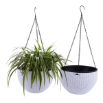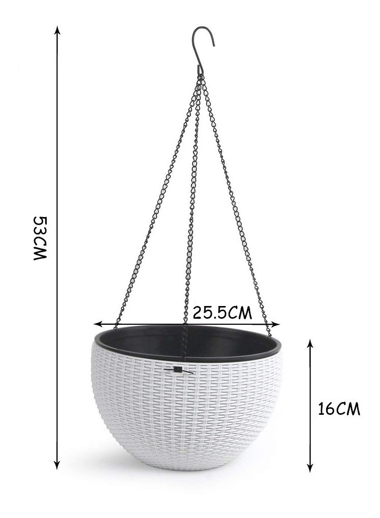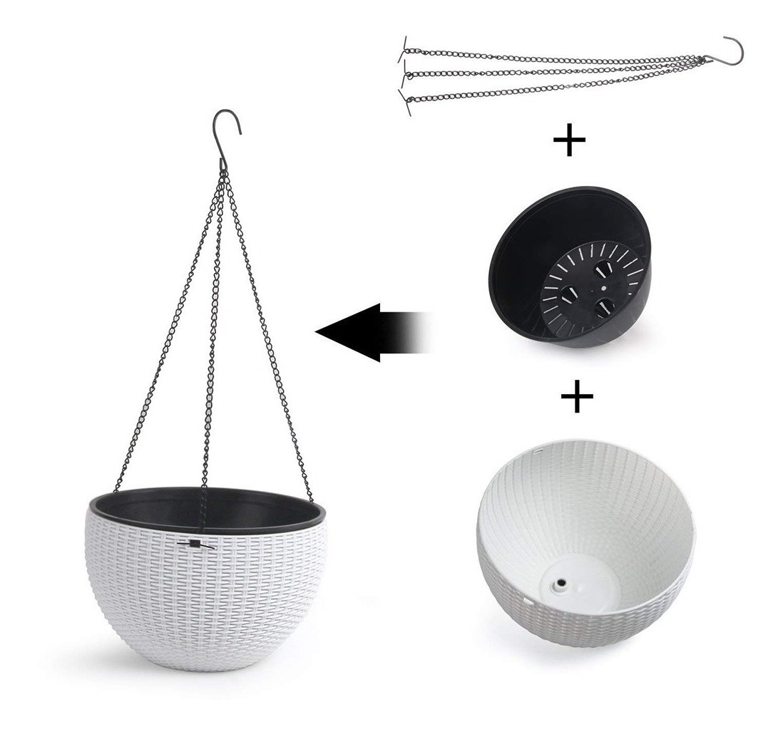 – Atractivo diseño tejido: decoración elegante y elegante, excelente opción para tus plantas y flores adorables. – Práctico escurridor de malla: deja pasar el exceso de agua pero mantiene el suelo dentro de la maceta y hace que sea cómodo para tus plantas. – Impresionante regalo de jardinería: color clásico con diseño simple, ideal para mostrar la mayoría de plantas y combinar bien con la mayoría de estilos decorativos del hogar. – Juego de 1; Dimensiones de la cesta: 10 pulgadas de diámetro, 6.3 pulgadas de altura; Longitud de la cadena: 15 pulgadas; -No incluye soporte. Nota: plantas para fines de demostración solamente, no incluidas.