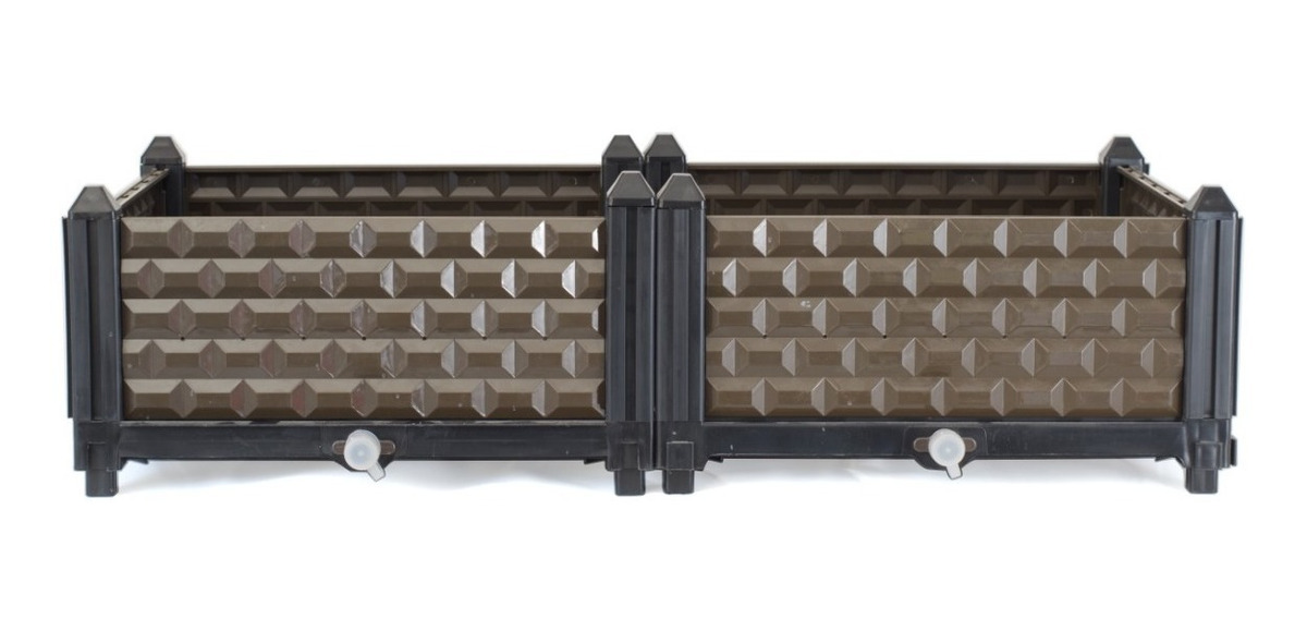 Maceta plástica cuadrada ideal para huerta urbana, con sistema de desagüe y de fácil ampliación