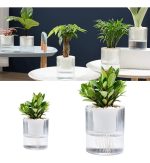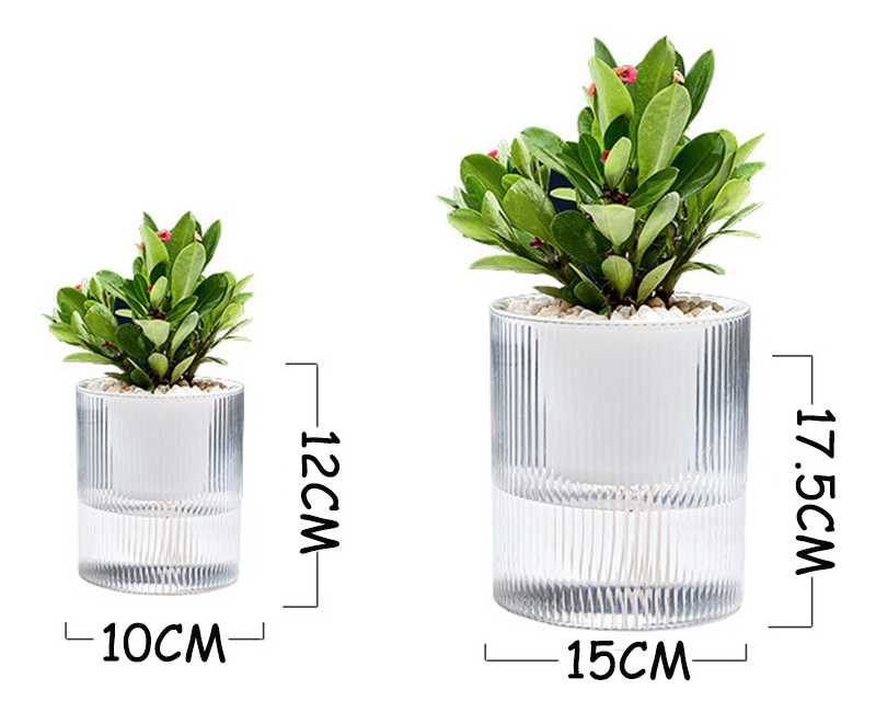 Maceta de plástico de auto riego con cuerda de mecha, contenedor de agua transparente, 2 capas, plantador, tiesto redondo, lavabo para flores