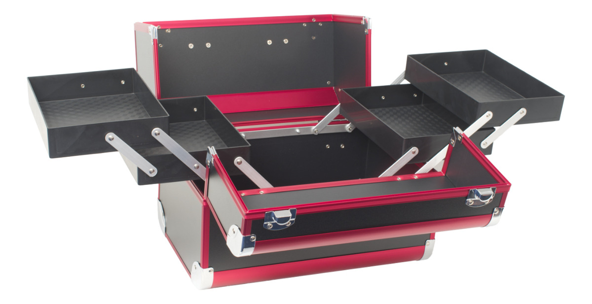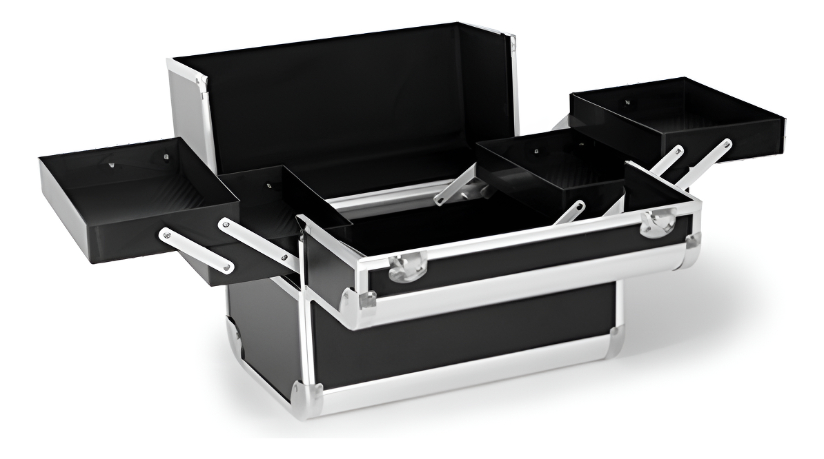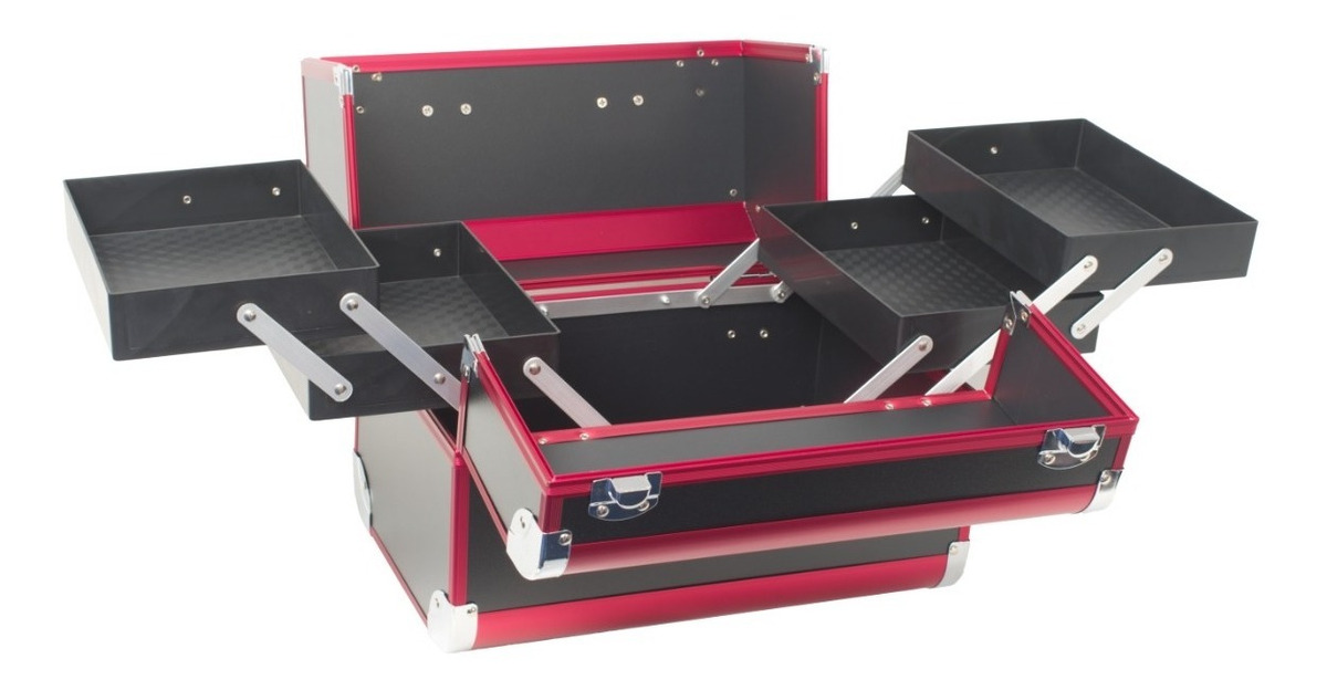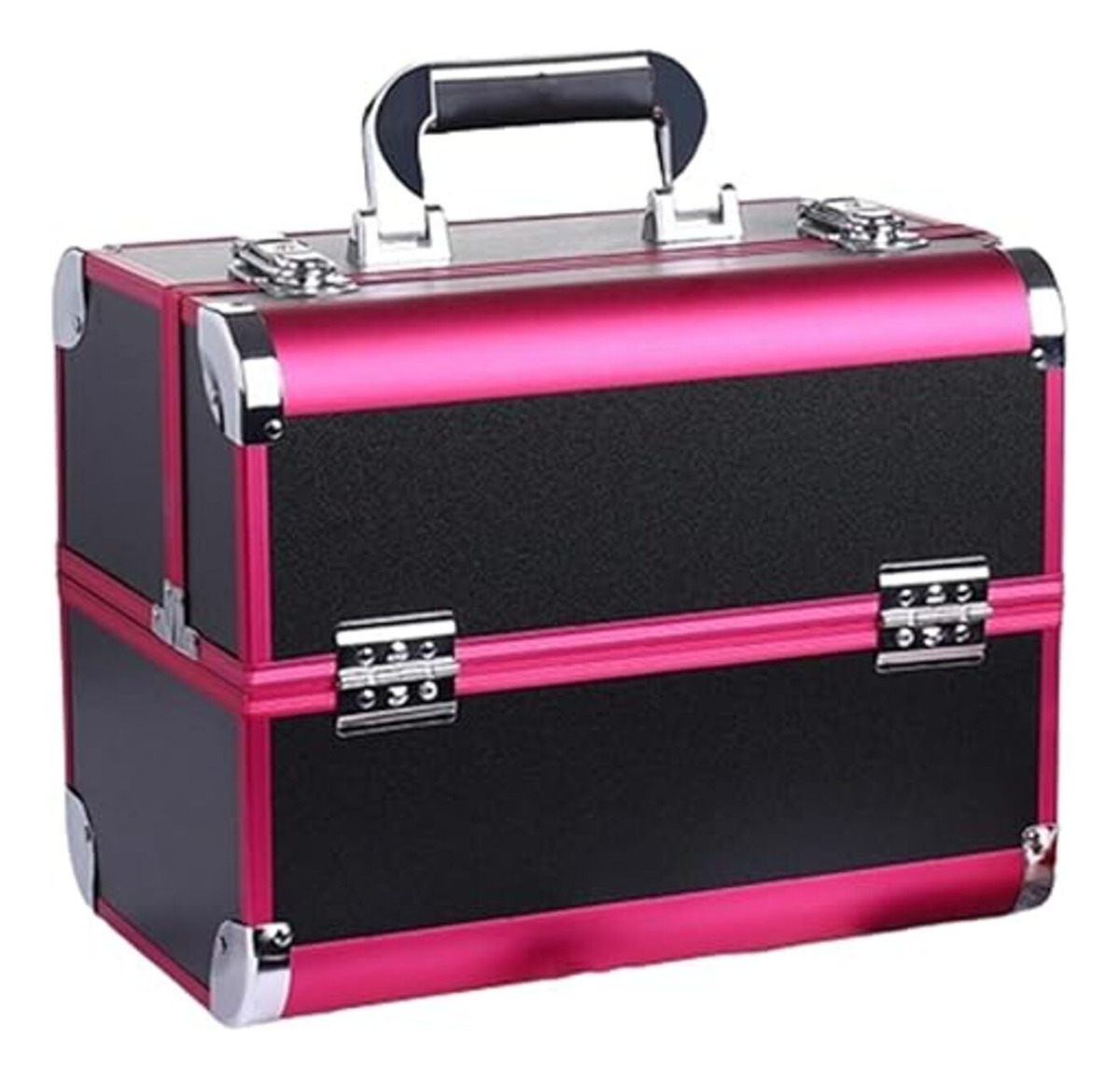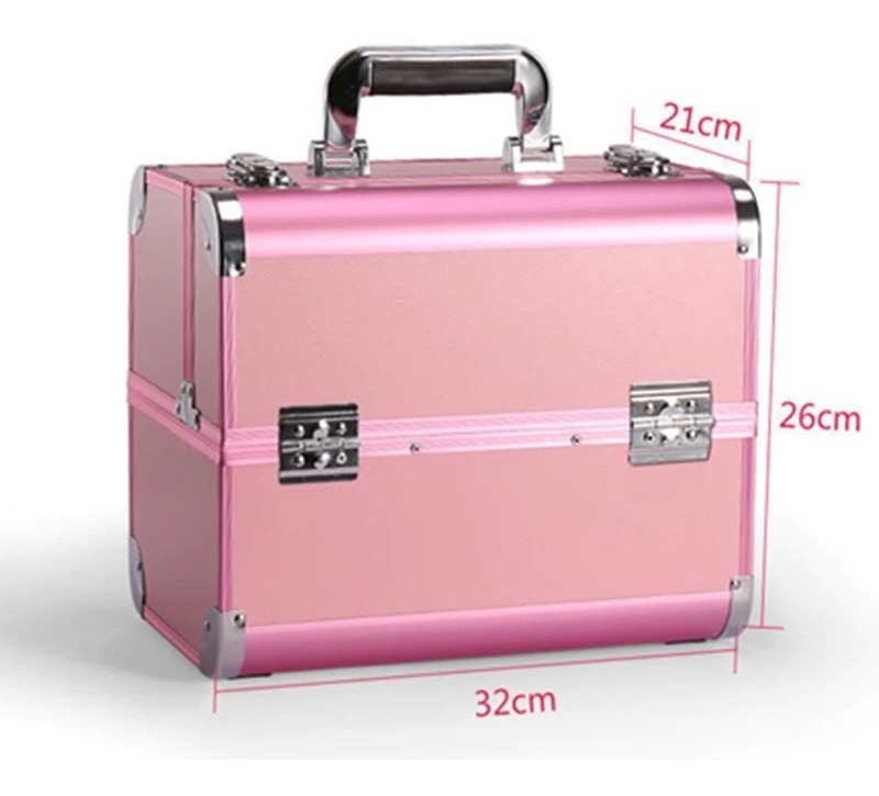 Maleta para almacenamiento de cosméticos, compartimentos plegables para un fácil acceso, el compartimento inferior es ideal para almacenar artículos grandes. Material: abc, aluminio y pc. La maleta incluye un juego de llaves. El color del artículo puede ser levemente diferente al de las imágenes que se muestran, esto puede ser por causa de muchos factores como el brillo de su monitor y el brillo de la luz.