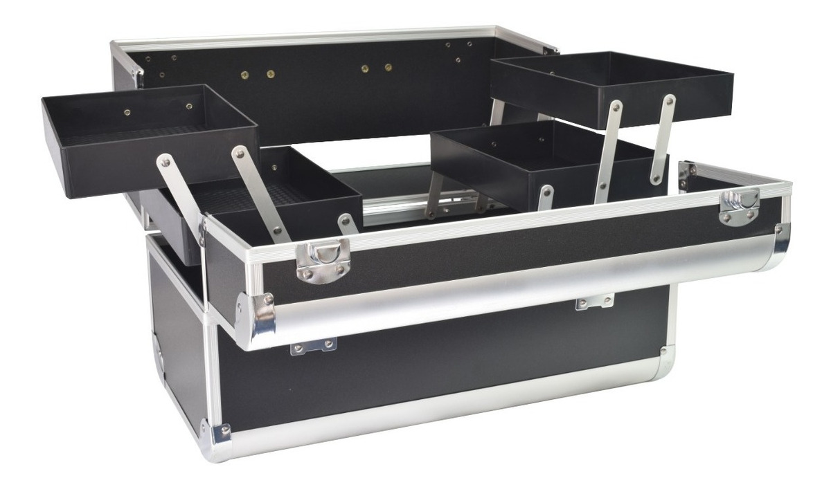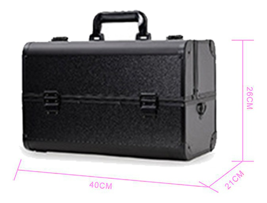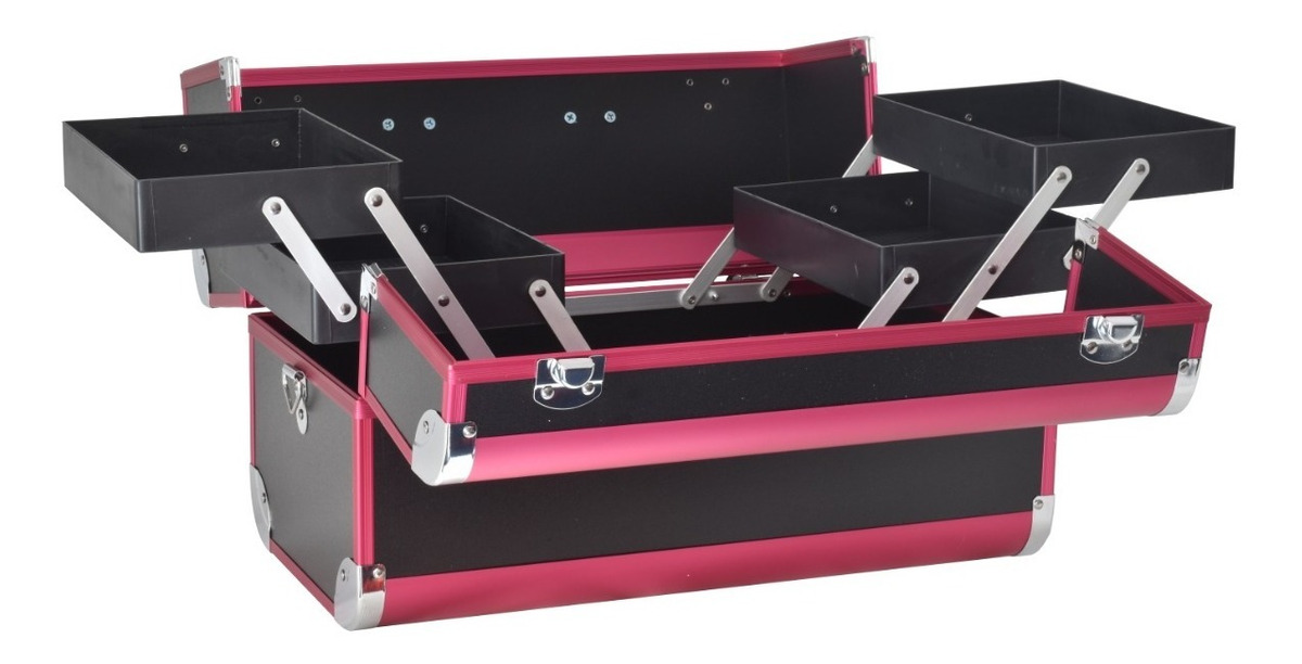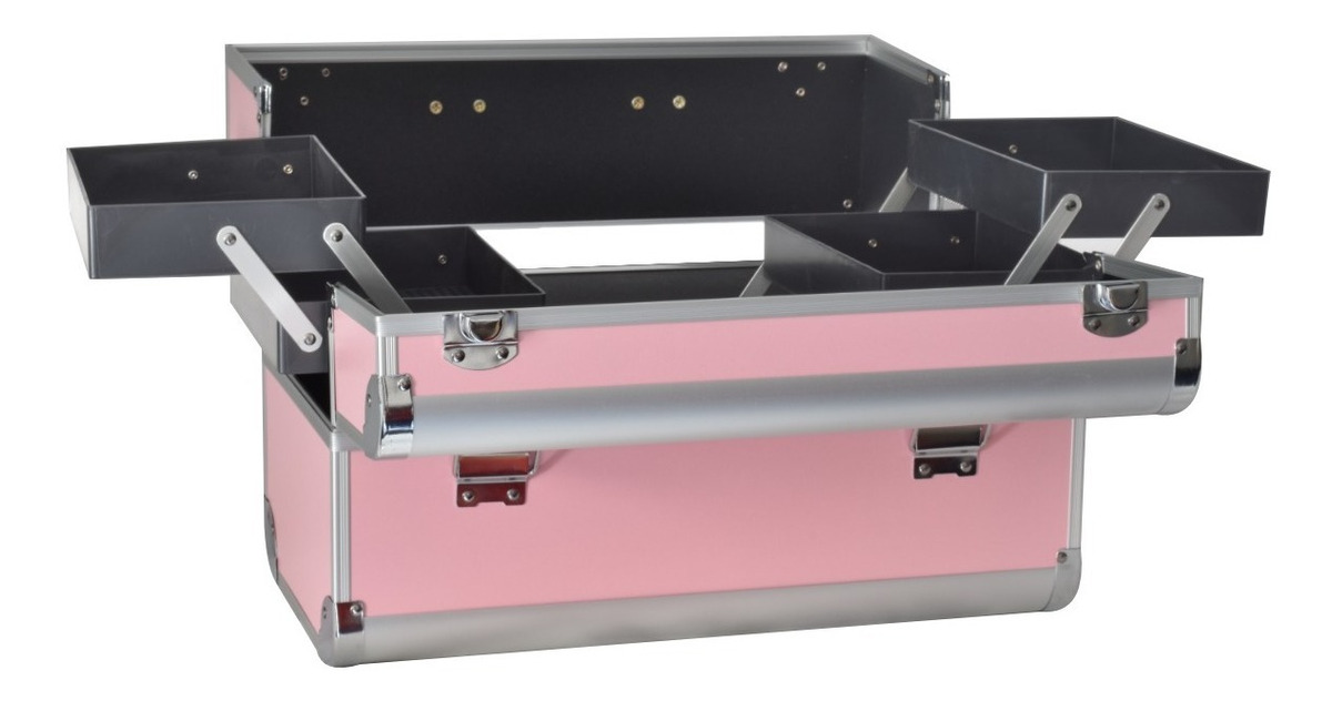Maleta para almacenamiento de cosméticos, compartimentos superiores plegables con fácil acceso donde puede colocar esmaltes de tamaño pequeño , el compartimento inferior es ideal para almacenar artículos grandes. Material: abc, aluminio y pc. La maleta incluye un juego de llaves. El color del artículo puede ser levemente diferente al de las imágenes que se muestran, esto puede ser por causa de muchos factores como el brillo de su monitor y el brillo de la luz.