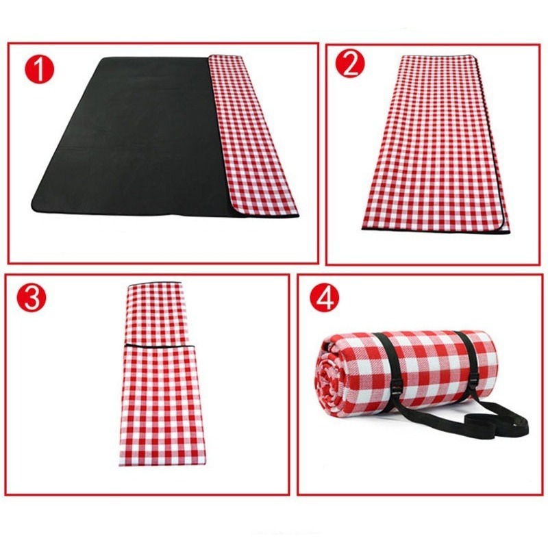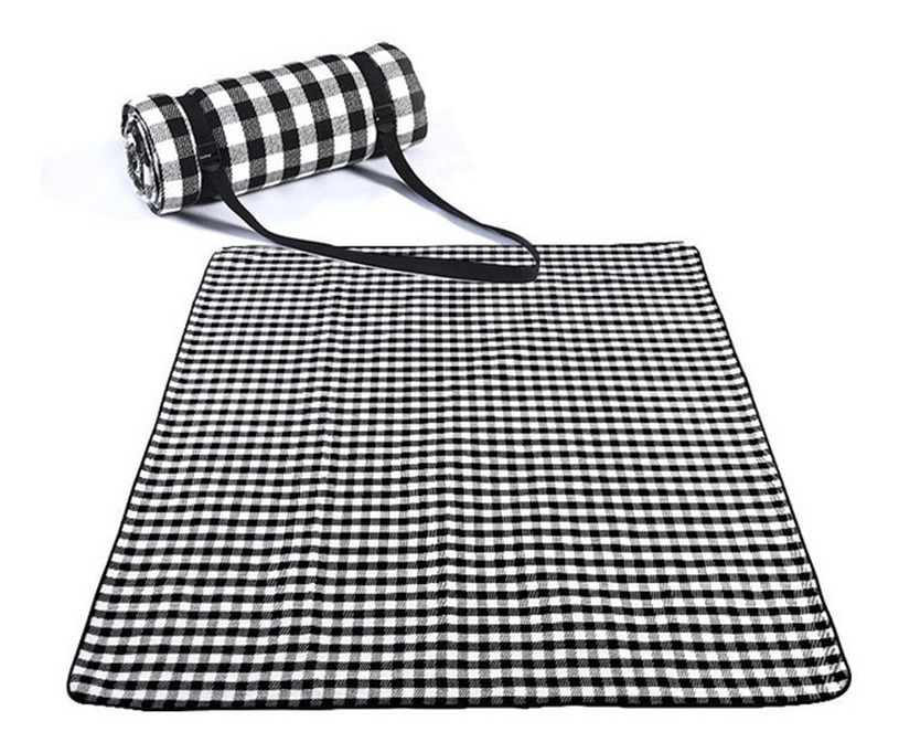 Alfombra / mantel de 2m x 1,50m para picnics al aire libre. Espaciosa, acolchada, de fácil transporte. Trae tiras para colgarla una vez plegada. Estilo retro