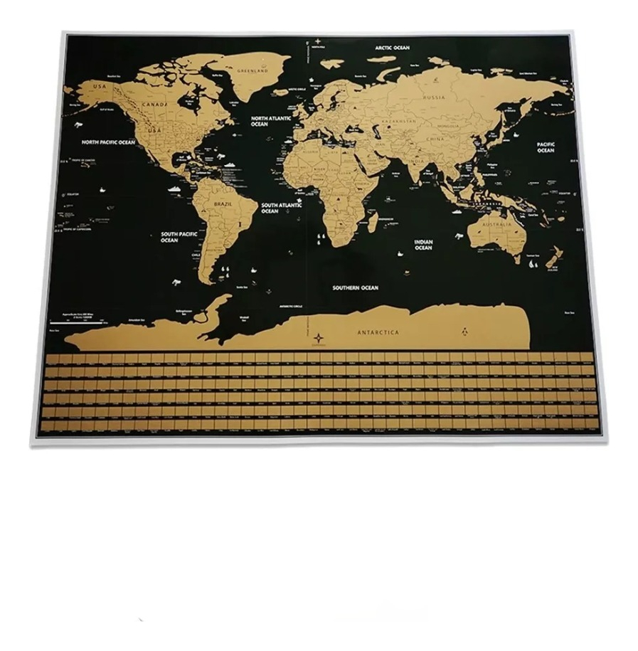 – Ideal para planificar viajes y marcar cuáles países del mundo visitaste. – A medida que lo vas raspando van apareciendo los países en colores. – Es un recordatorio excelente de los viajes realizados y te desafía a seguir viajando para seguir raspando. – ¡Un regalo distinto para todo viajero!. – Medidas: 82,5 cm x 59,4 cm.