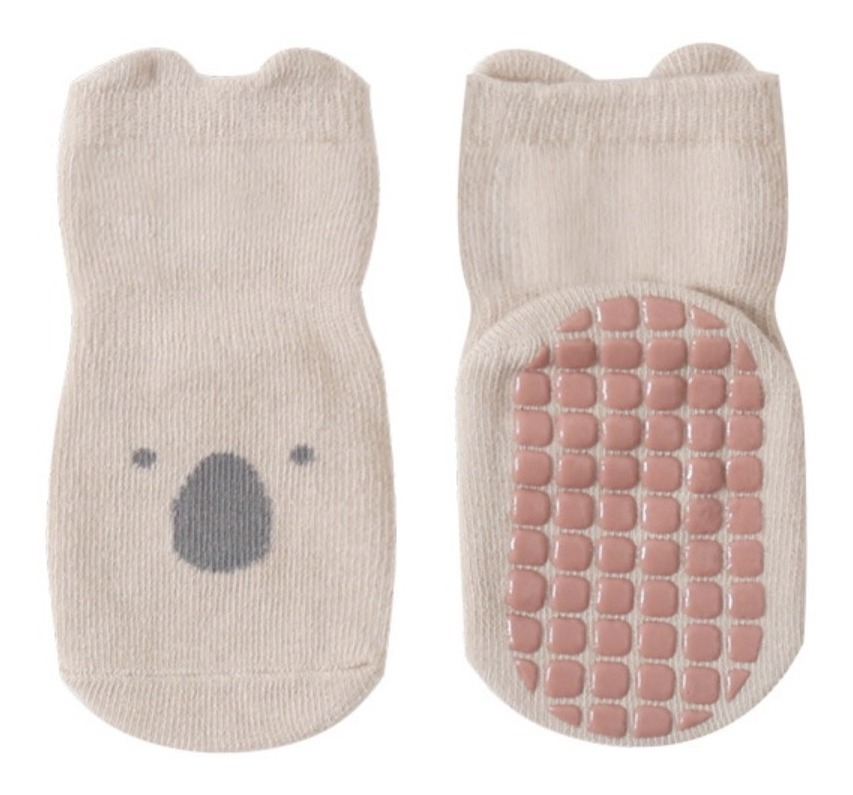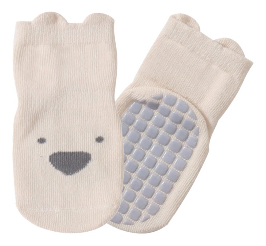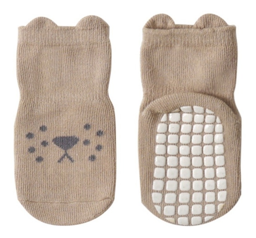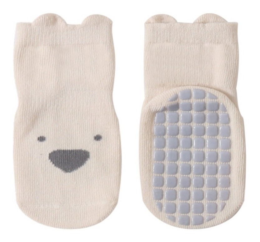 Divertidas y cómodas medias con suela antideslizante tipo pantufla, ideales para bebés, niños y niñas. Diseño tierno con cara de oso, perfectas para mantener los pies abrigados y seguros al caminar. ¡Prácticas y suaves para el día a día!
