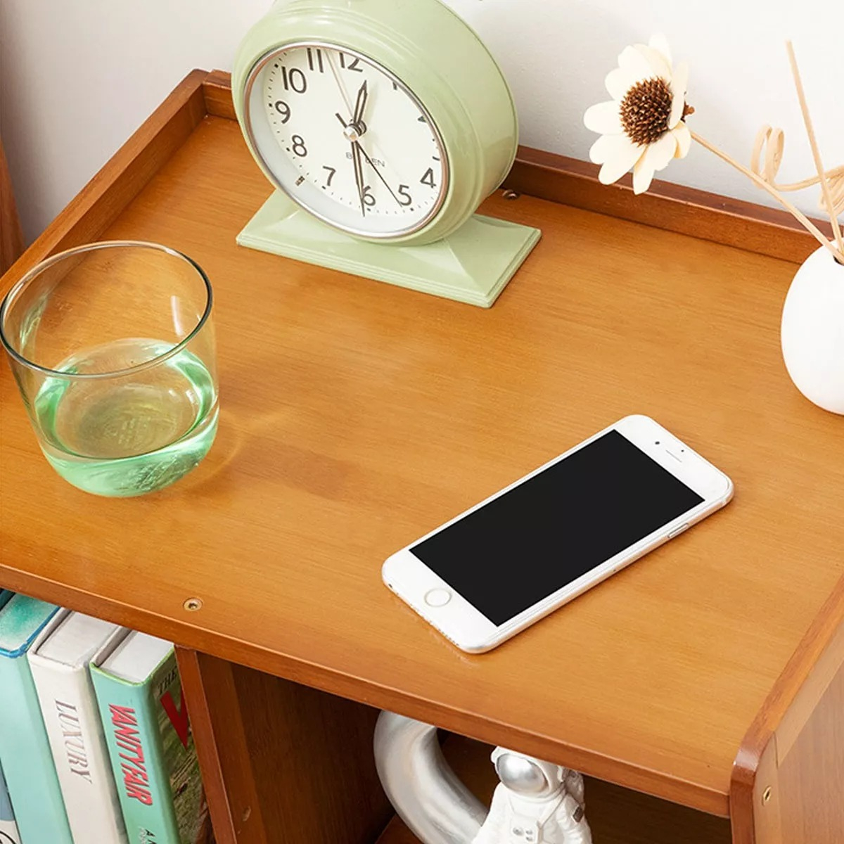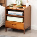 Esta mesa de luz de bamboo combina estilo y funcionalidad, perfecta para tu dormitorio. Con un cajón espacioso y un doble estante, ofrece un amplio espacio de almacenamiento para mantener tus objetos organizados y al alcance.