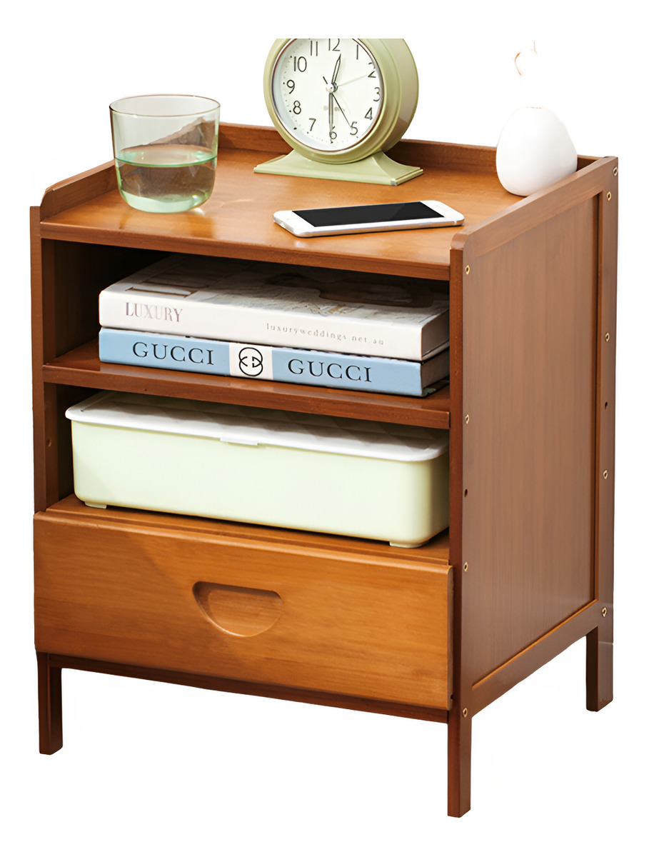Mesa De Luz Bamboo Un Cajon Doble Estante