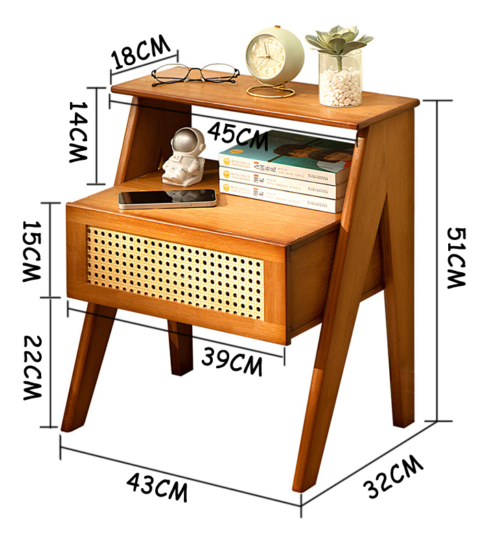 Esta mesa de luz combina un diseño moderno y natural con detalles tipo ratán de bambú, perfecta para darle un toque elegante a tu dormitorio. Con un cajón y dos estantes, ofrece amplio espacio para organizar libros, lámparas y objetos personales. Su estructura resistente y acabados de alta calidad aseguran durabilidad y estilo.