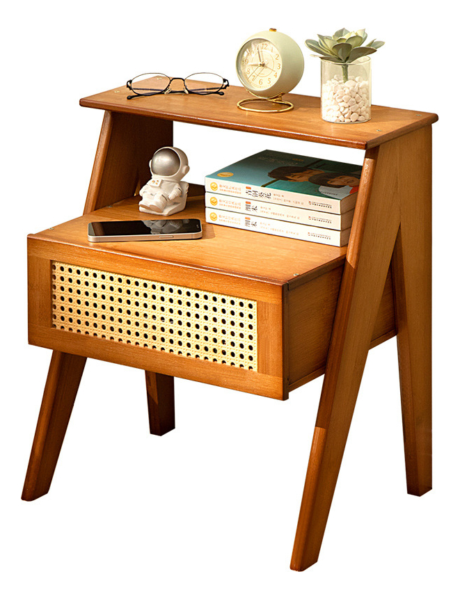 Mesa De Luz Cajon dos estantes Tipo Ratan Bamboo Dormitorio