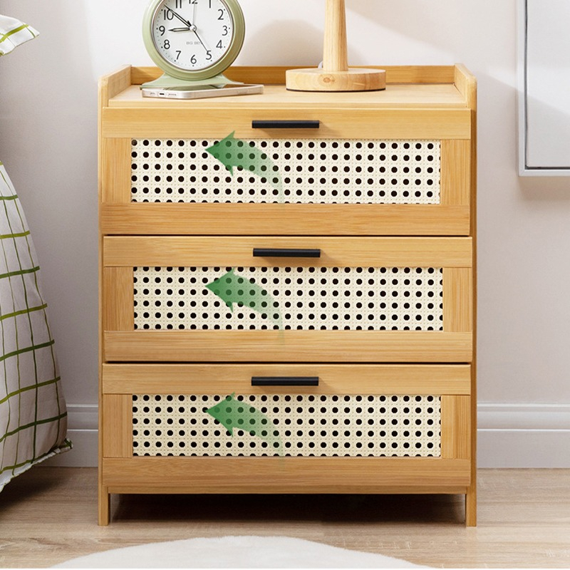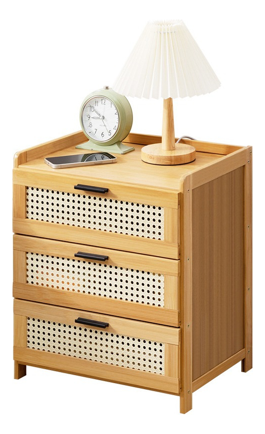 //Mesa De Luz Con 3 Cajones Tipo Ratan Bamboo Dormitorio//