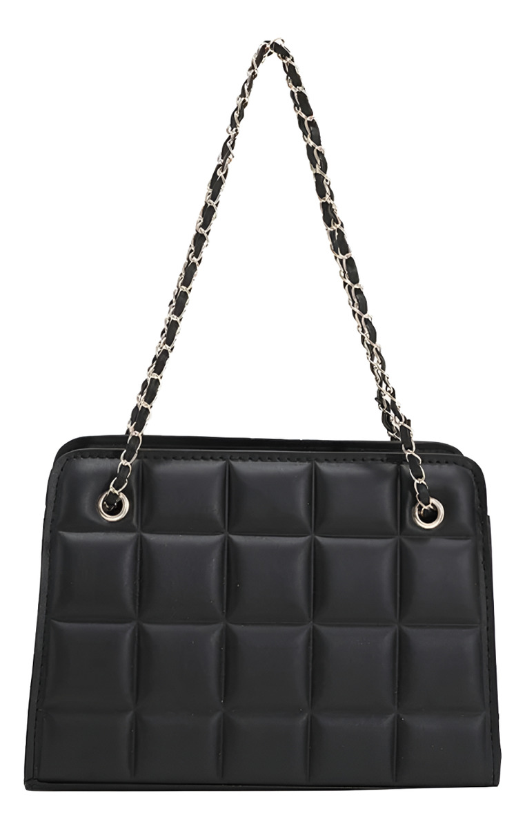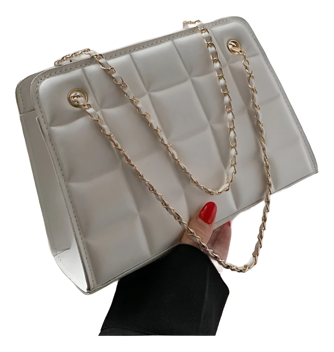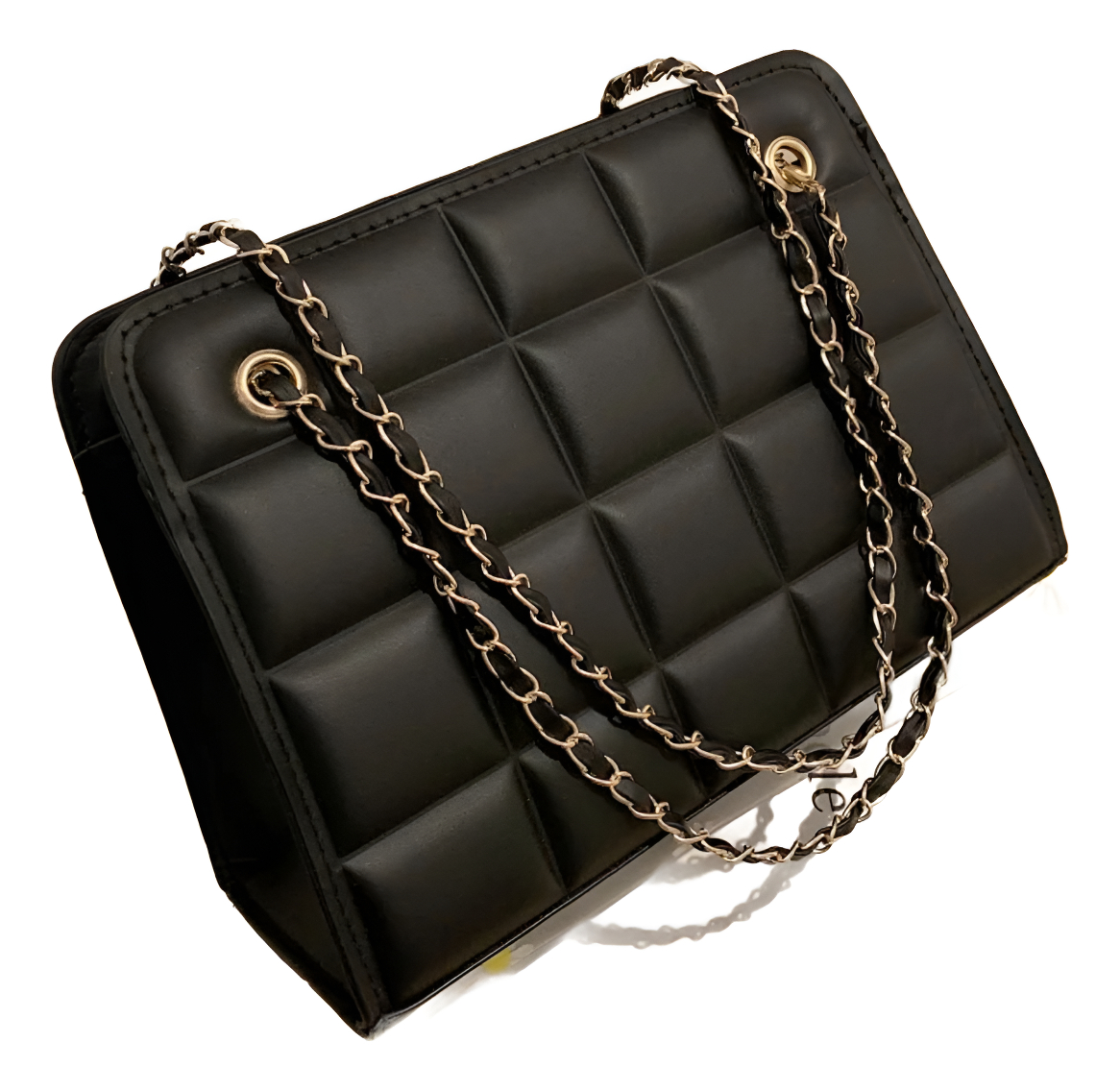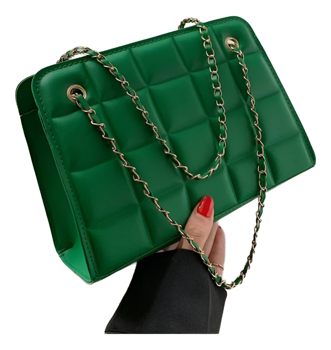 Mini cartera a la moda con diseño a cuadritos de cuero, con elegantes correas que cuentan con detalles dorados. Varios colores disponibles para elegir y vestir de la forma más lujosa.