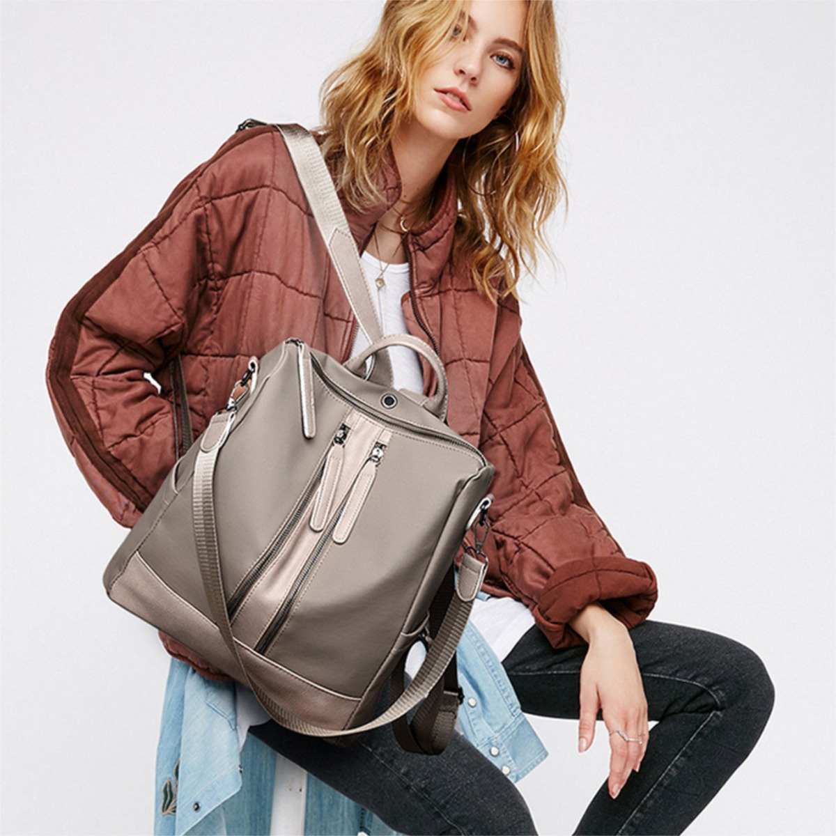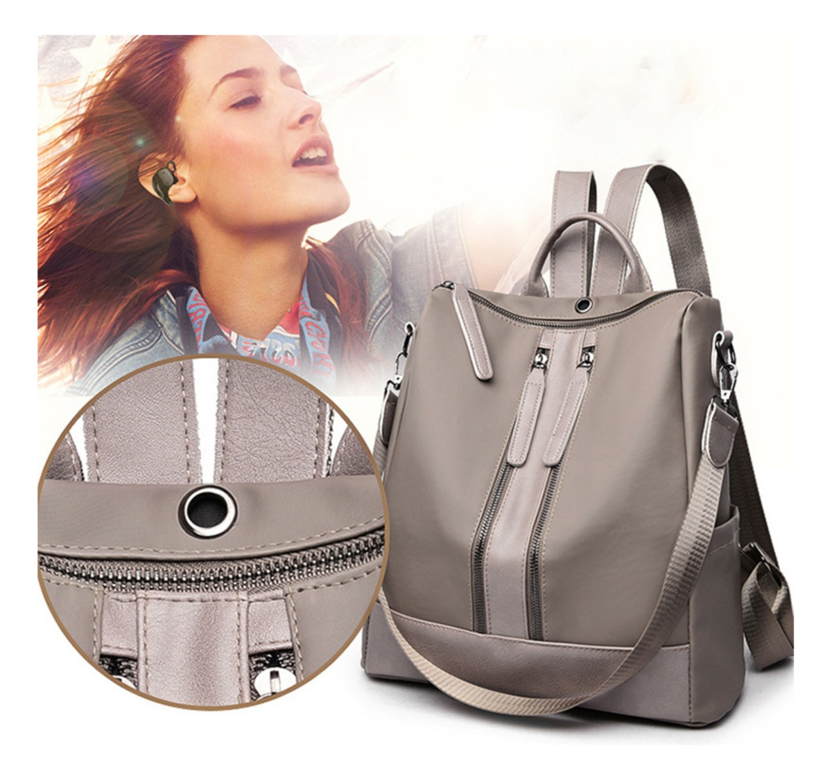 Mochila Cartera Antirrobo Moderna Bolsillos Exteriores