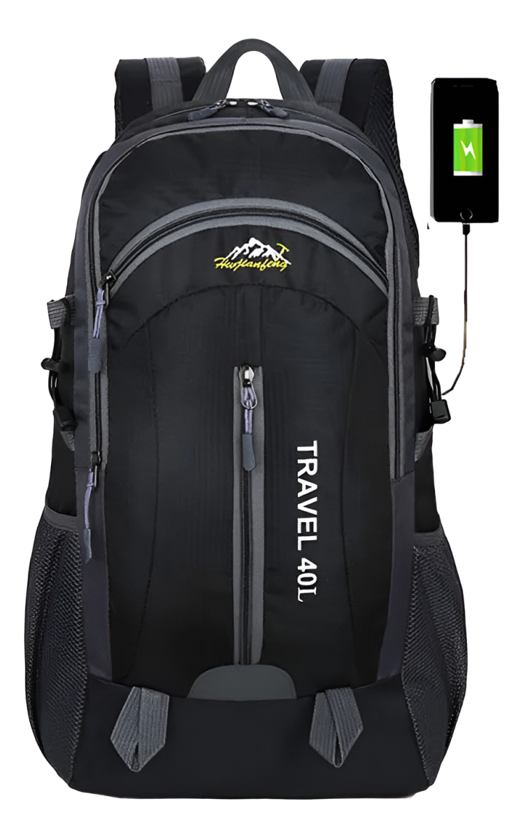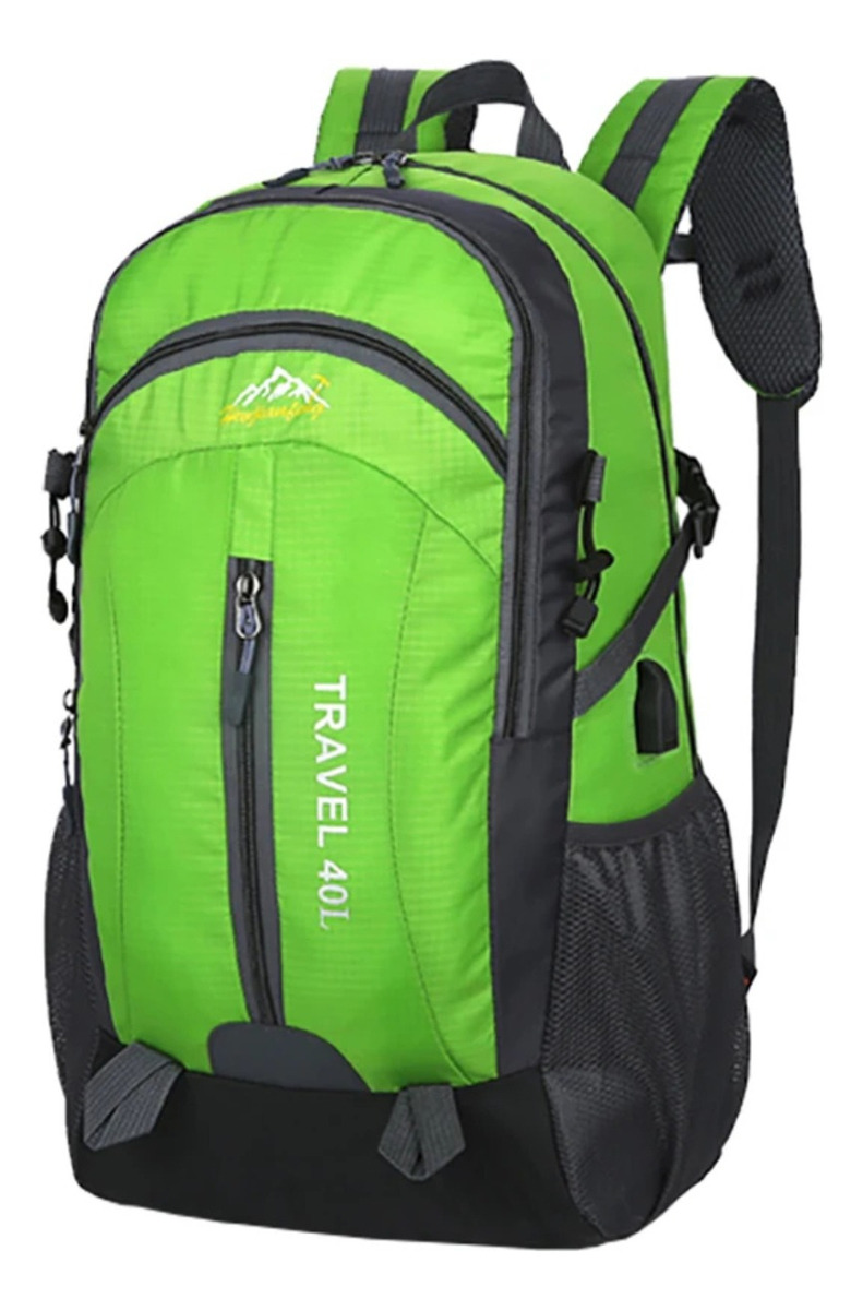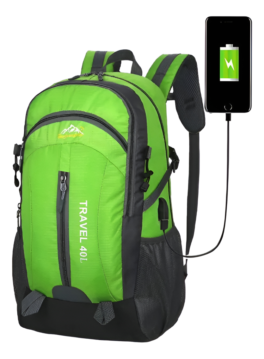 Esta mochila de senderismo está diseñada para ofrecer comodidad y funcionalidad en tus aventuras al aire libre. Cuenta con 4 bolsillos exteriores de fácil acceso para artículos esenciales. Amplio compartimento principal para llevar ropa, alimentos, y otros equipos. En ambos lados contiene un elástico que permite sujetar objetos. Además cuenta con dos sujetadores en la parte inferior. Incluye un cable USB de 45 cm de largo, ideal para conectar tu batería externa y poder utilizar tus dispositivos mientras se cargan. Batería externa no incluida.