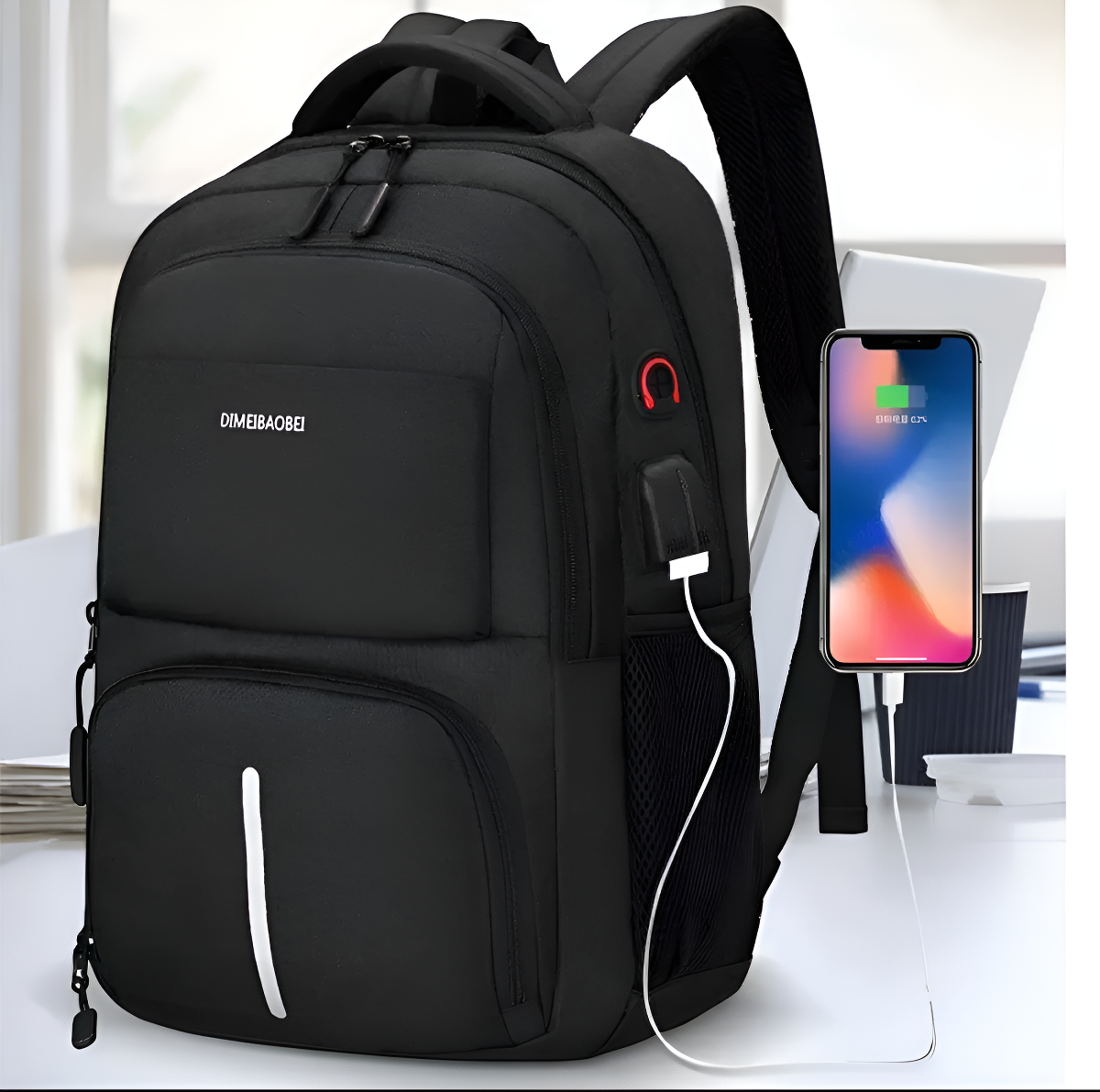 Esta mochila urbana, fabricada en resistente tela impermeable, es perfecta para estudiantes y viajeros que buscan estilo y funcionalidad. Diseñada para llevar tu notebook y más, cuenta con 5 bolsillos externos, incluyendo dos bolsillos grandes con separadores para una mejor organización. Además, incluye entrada USB y auxiliar, facilitando la carga de dispositivos y el uso de auriculares mientras te desplazas.