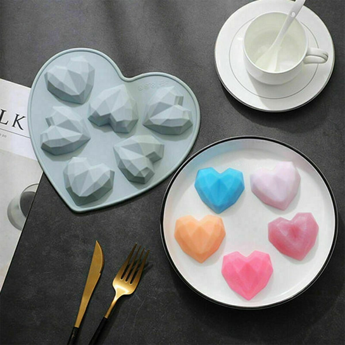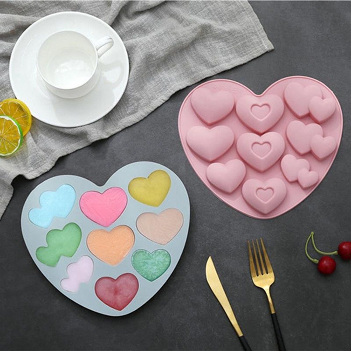 Herramienta ideal para principantes y profesionales tanto culinarios como artesanos. Moldes de corazones perfectos para decorar tortas con fondant, hacer caramelos, bombones, hielo, jabones, trabajos en resina y demás.
