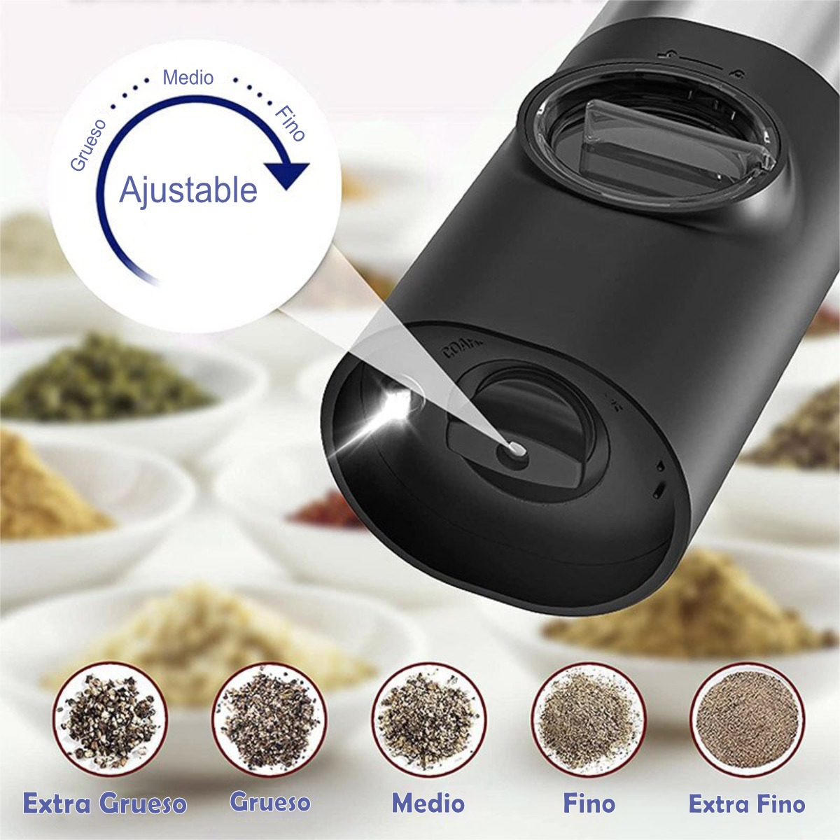 Molinillo a batería, ajustable para diferentes grosores de triturado.