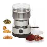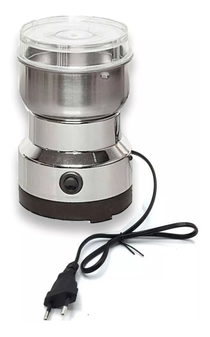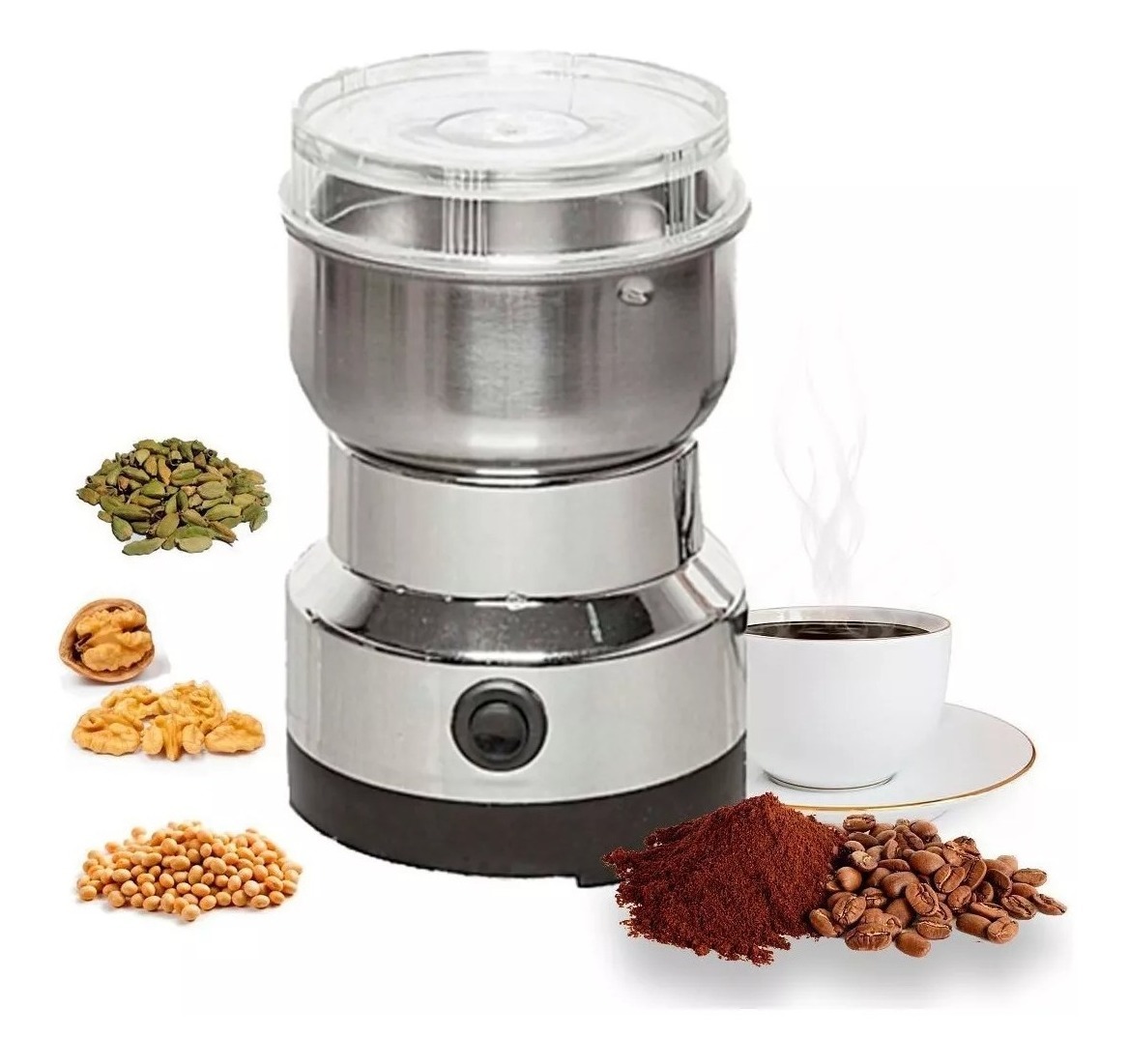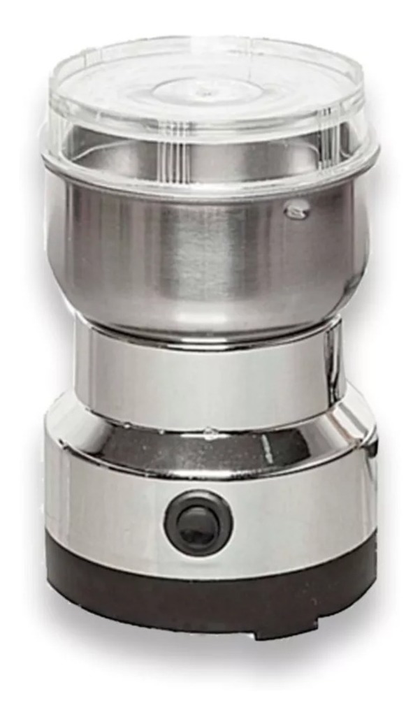 Molinillo eléctrico para café y especias. * Potencia: 150W. * Voltaje: 220 V – 50-60 Hz. * Capacidad: 100 gramos. * Carcaza de acero inoxidable 201. * Cubierta de plástico transparente para poder observar el proceso de molienda. * Inicio con un sólo botón. * Puede moler diferentes alimentos como granos de café, frijoles, pimientos, nueces, cereales, especias, hierbas, condimentos, semillas, etc. * Pequeño y portátil, se puede sostener fácilmente con una mano. * Para los amantes del café y las recetas naturales. * ¡Muele tus propios granos de café, los ingrediente de tus recetas y experimenta una revolución de sabor en casa!