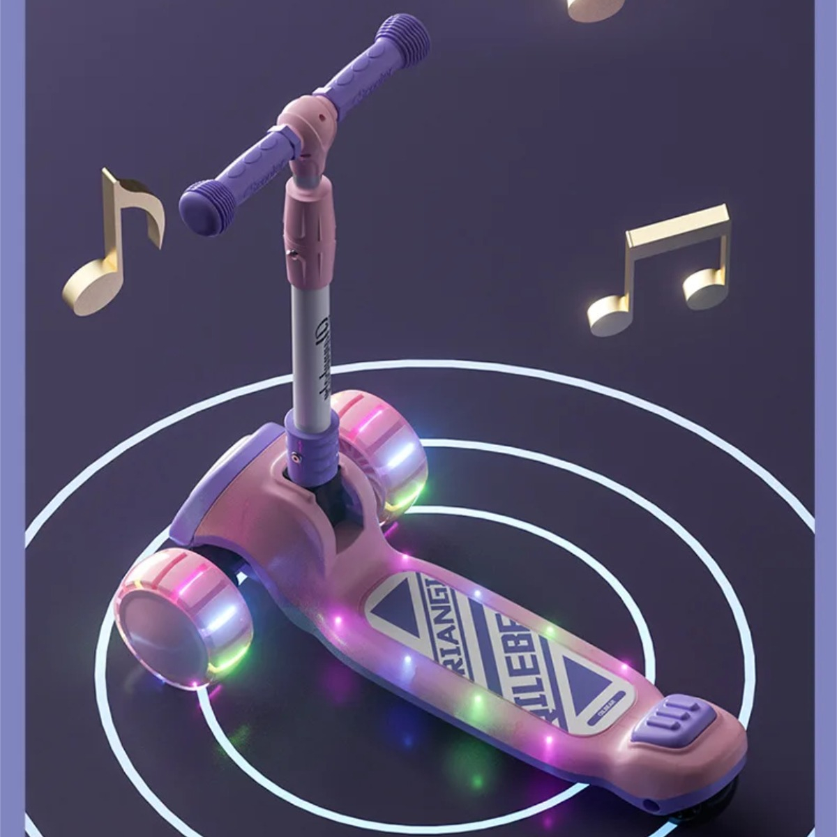 Monopatin Infantil 3en1 Plegable C/luces Y Palanca De Empuje