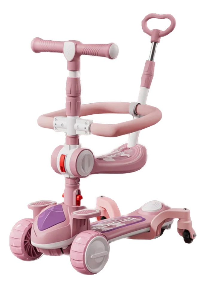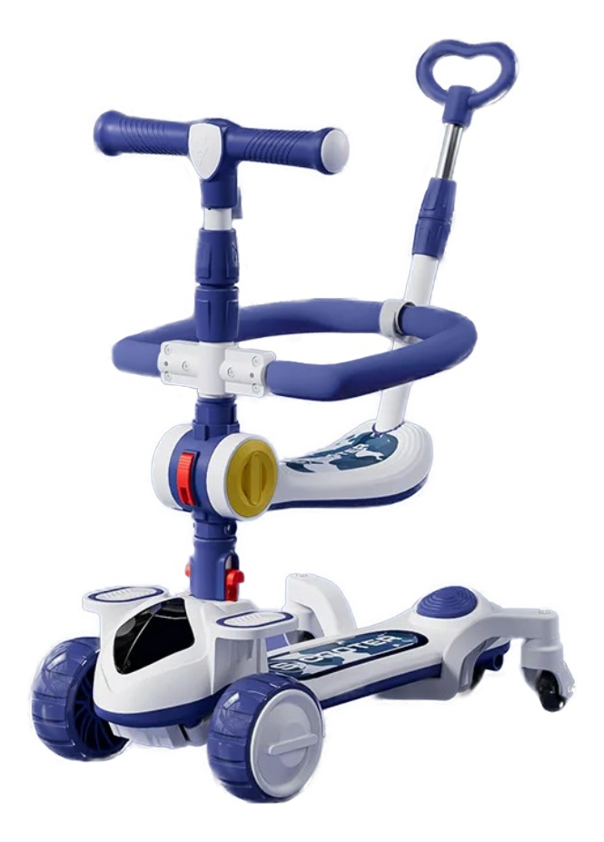 Monopatín 3 en 1 plegable, puede usarse como monopatín clásico, silla de empuje con palanca para mayor control o monopatín con asiento para mayor comodidad. Al andar, las ruedas emiten luces y sonido, ideal para acompañar el crecimiento y diversión de los más pequeños.