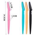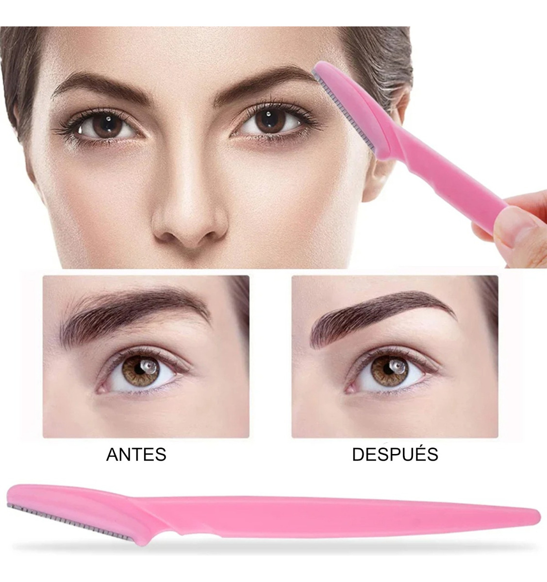 Pack de 3 unidades, colores disponibles Rosa y Azul verdoso. Se envían al azar.Producto ideal para perfilado de cejas, y afeitado de los vellos del rostro.Medidas aproximadas:Largo 15cm Ancho: 1cmPerfil de corte: 3,7cm