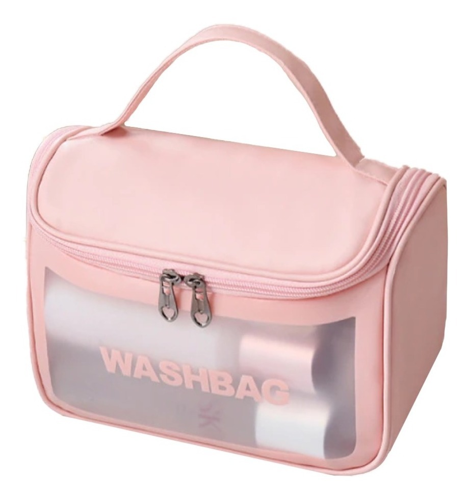 Con un diseño moderno, este neceser combina funcionalidad con estilo. Su asa superior facilita el transporte, y el cierre con cremallera asegura que todo quede perfectamente guardado.