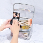 Neceser organizador de cosméticos de doble capa, resistente al agua y con gran capacidad. Ideal para utilizar como neceser de maquillaje, para viajes, rutina diaria de belleza y más. Todos los modelos se venden sin accesorios.