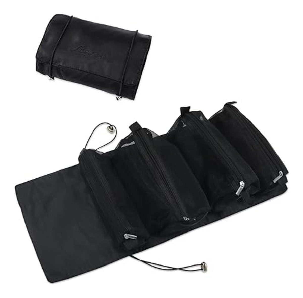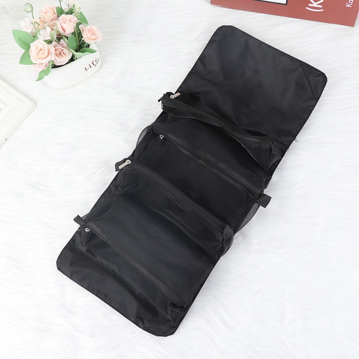 Práctico neceser plegable, cuenta con 4 compartimentos de distintas capacidades, estilo cartuchera que se adhieren por velcro, lo que permite extraerlos, reordenarlos, cambiarlos y mucho más. Gran capacidad y versatilidad. Tamaño abierto: 24cm x 55cm Tamaño cerrado: 15cm x 24cm Tamaño cartucheras grandes: 22cm x 13cm Tamaño cartucheras chicas: 22cm x 5cm